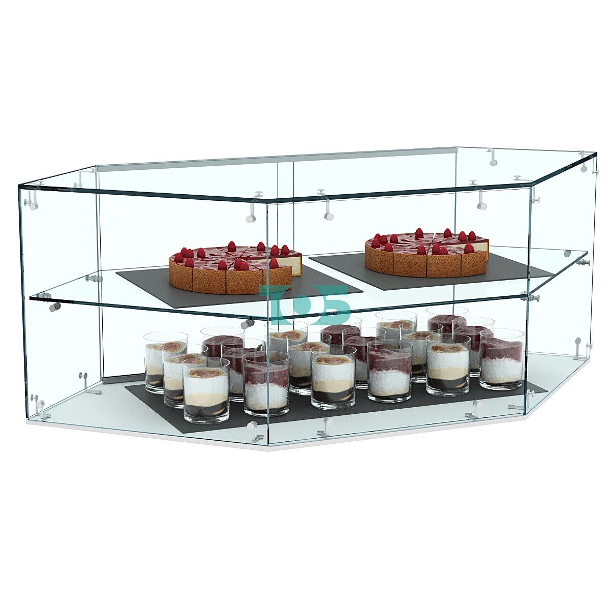 Угловая мини-витрина из стекла с полкой №15-1 — это идеальное решение для демонстрации выпечки и кондитерских изделий в местах с ограниченным пространством. Витрина, выполненная в виде шестигранника, гармонично вписывается в углы торговых площадей, образуя аккуратный и привлекающий внимание угол. Прозрачная конструкция и удобная полка обеспечивают отличный обзор продукции, создавая комфортные условия для её демонстрации.