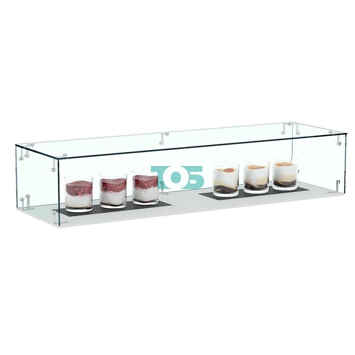 - витрина представляет из себя стеклянную, полностью прозрачную конструкцию, предназначенную для установки на готовые столешницы и прилавки;
