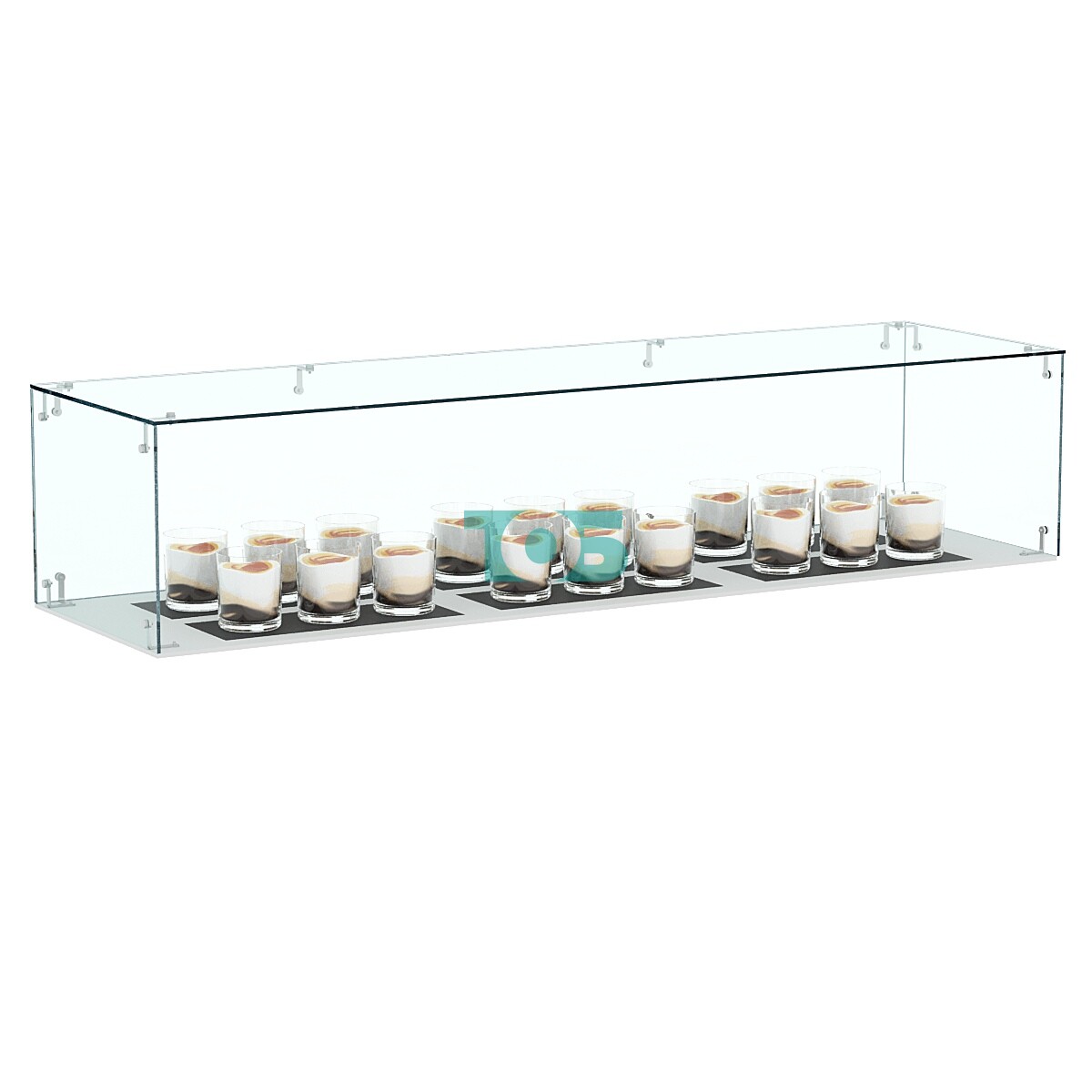 - витрина представляет из себя стеклянную, полностью прозрачную конструкцию, предназначенную для установки на готовые столешницы и прилавки;