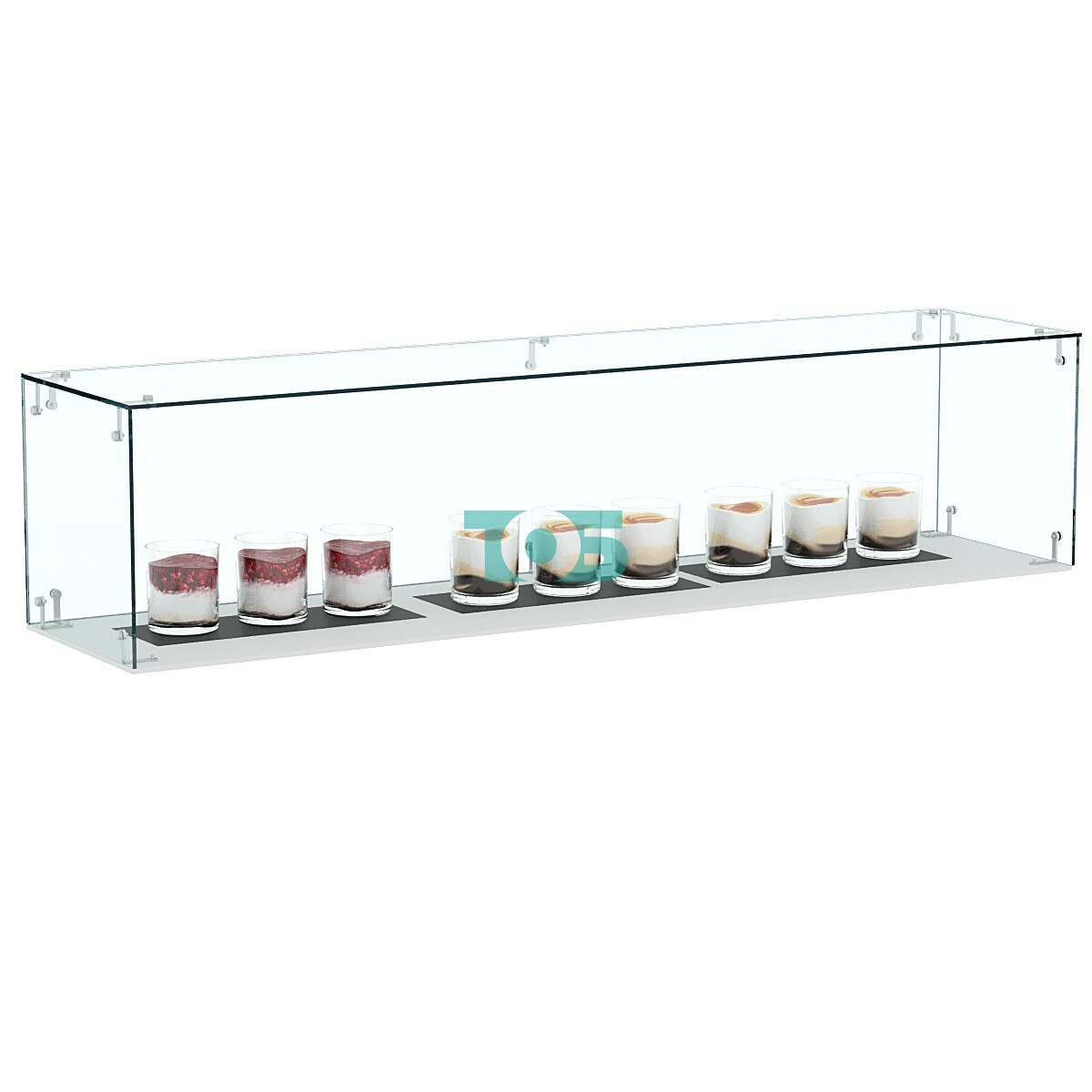 - витрина представляет из себя стеклянную, полностью прозрачную конструкцию, предназначенную для установки на готовые столешницы и прилавки;