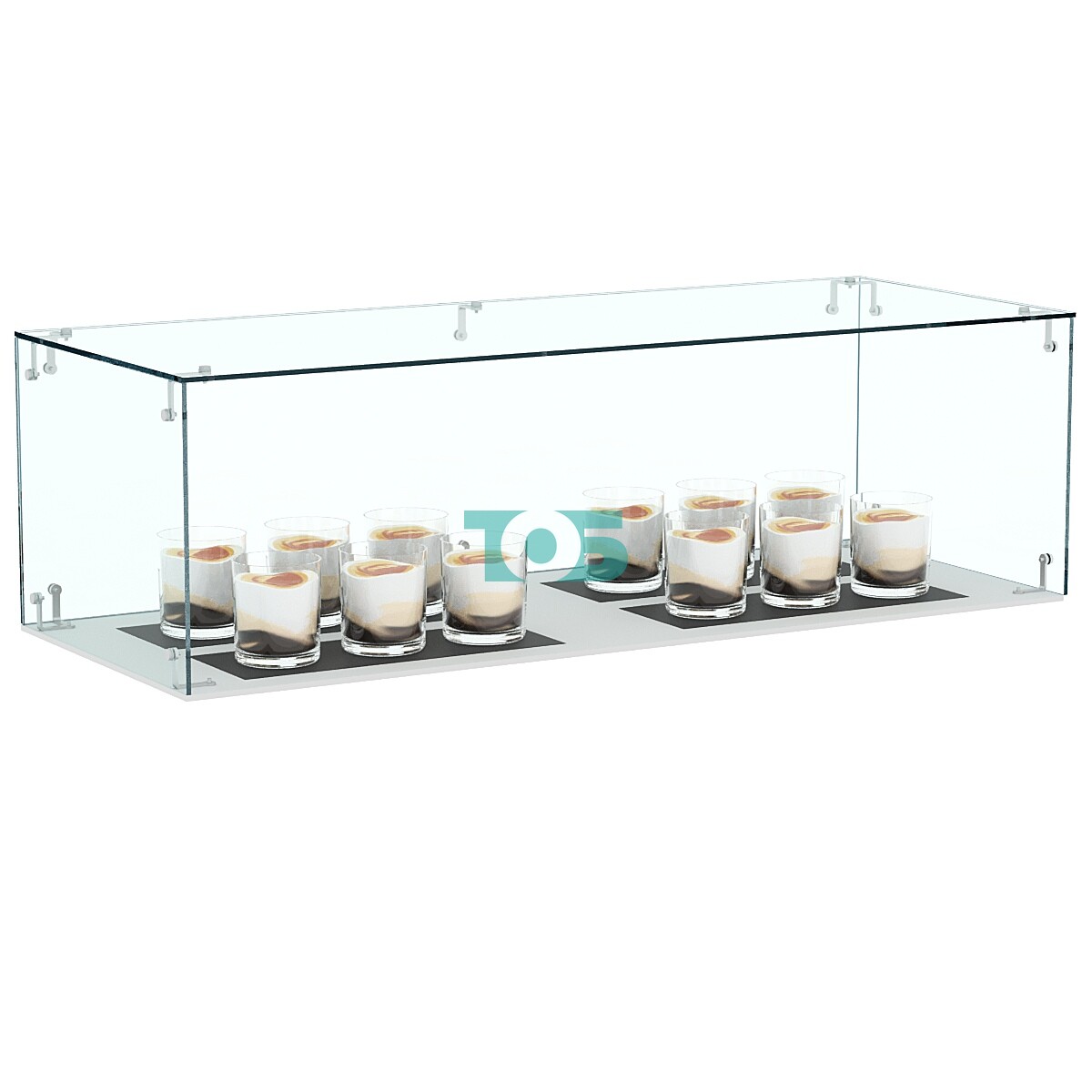 - витрина представляет из себя стеклянную, полностью прозрачную конструкцию, предназначенную для установки на готовые столешницы и прилавки;