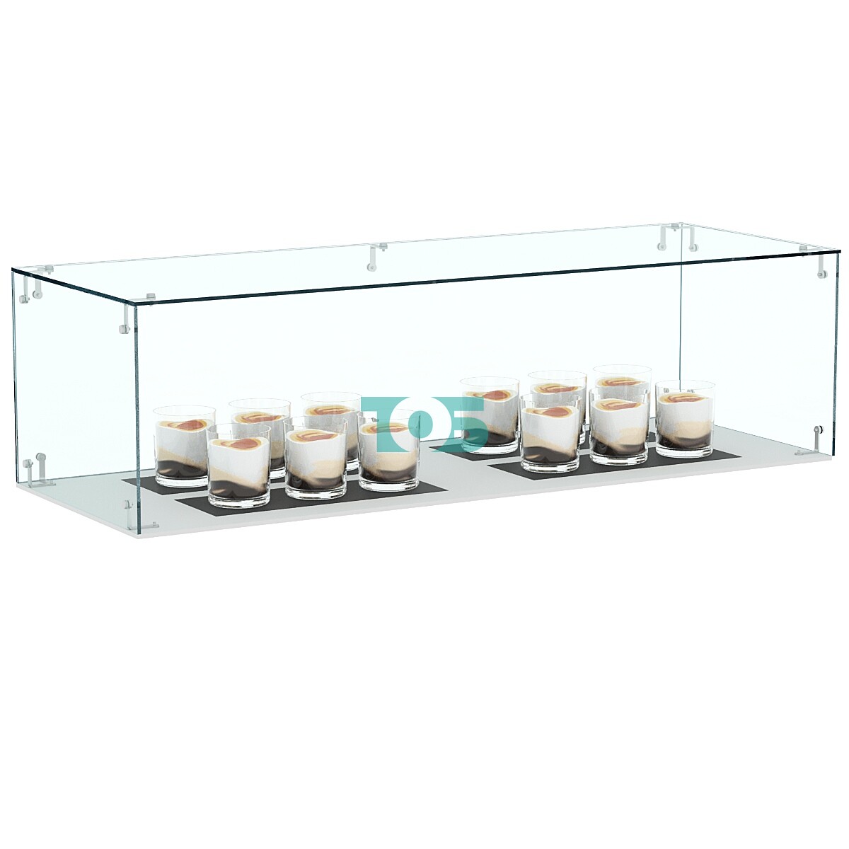 - витрина представляет из себя стеклянную, полностью прозрачную конструкцию, предназначенную для установки на готовые столешницы и прилавки;