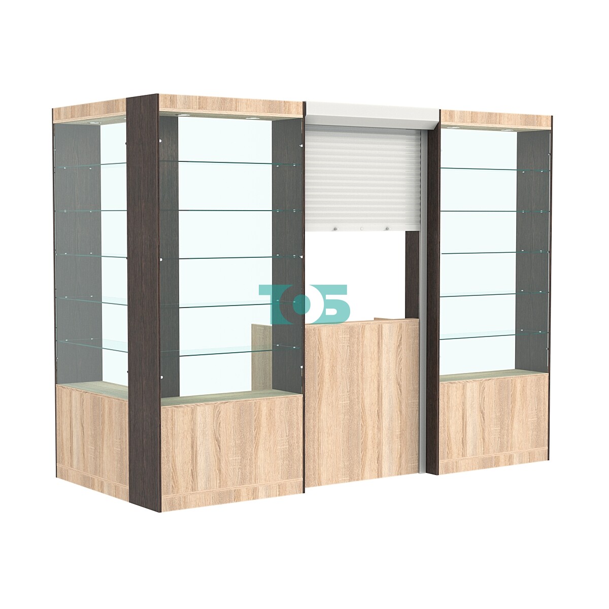 Состоит из трёх витрин типа ЭКОНОМ глубиной 300 мм.