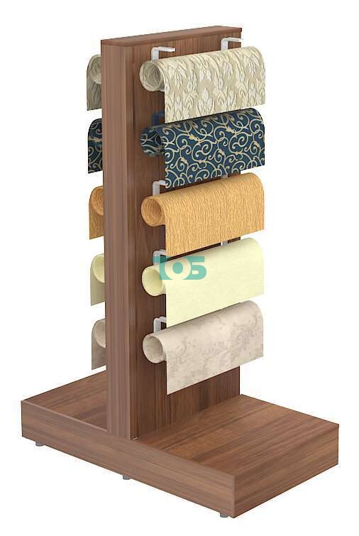 - каждая секция стеллажа включает 5 комплектов держателей с каждой стороны для рулона обоев для демонстрации Товара покупателю, данное количество можно увеличить до 7-ми держателей с каждой стороны, если рулоны с обоями не разворачивать;
