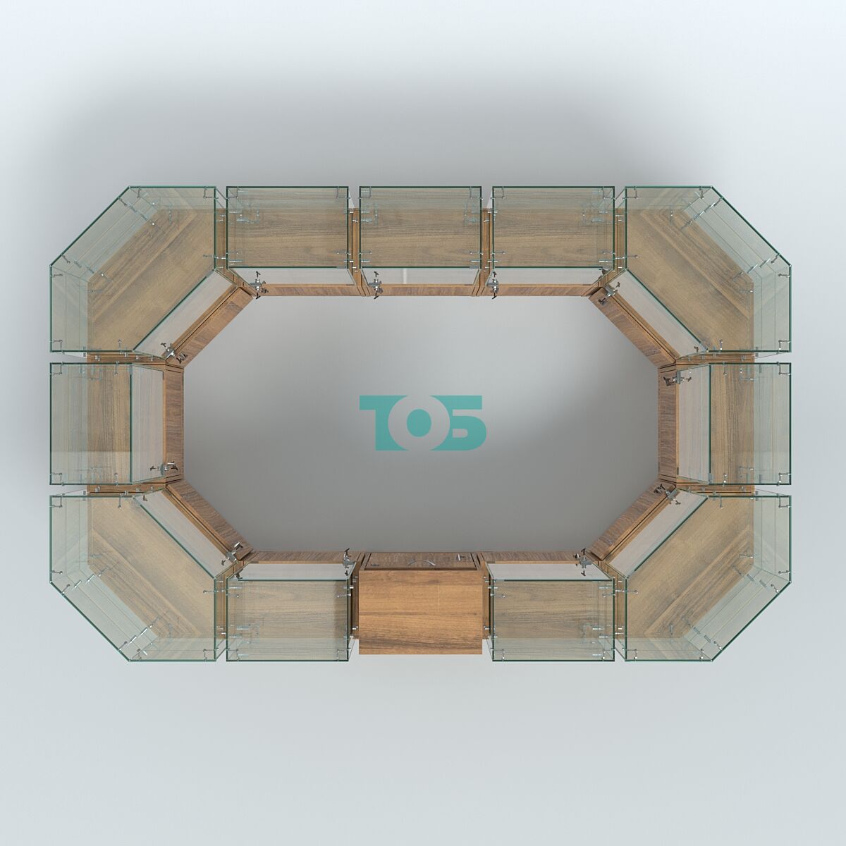 Отличия модели стеклянного островка-павильона серии КОЛЬЦО прямоугольного №6:
