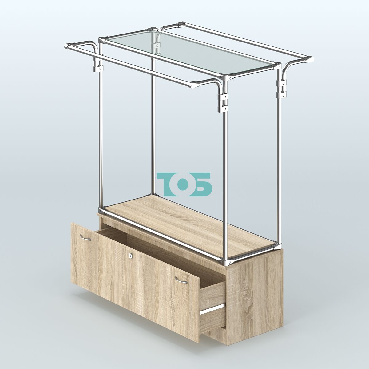 Тумба с выдвижным ящиком: оснащена одним выдвижным ящиком с врезным замком, что обеспечивает безопасное хранение документов, товаров или других ценностей.