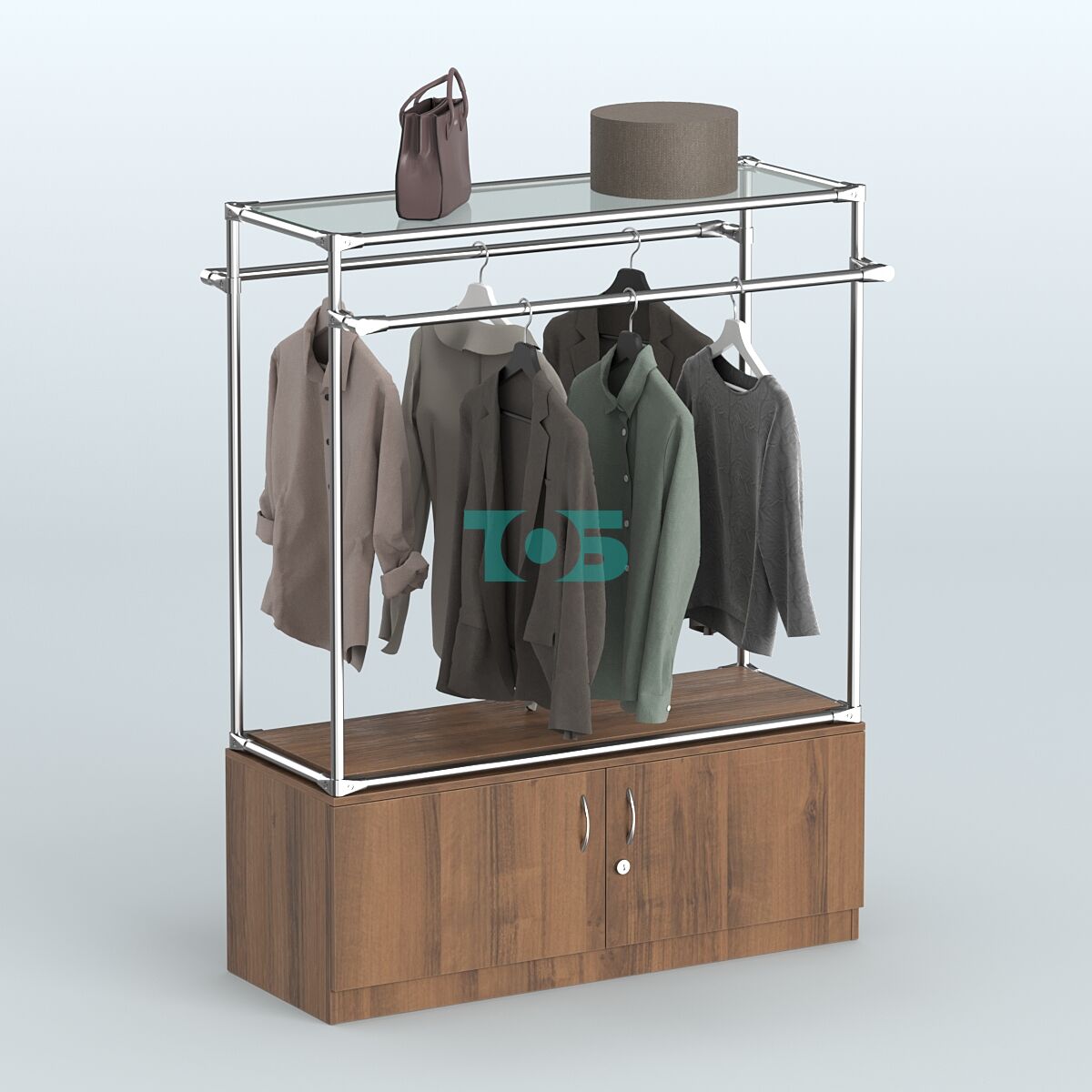 Два выносных поручня: предназначены для одежды или других предметов, что добавляет системе функциональности и удобства в использовании.