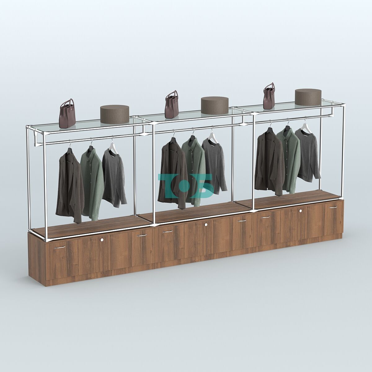 Задняя стенка: отсутствует, что способствует визуальному расширению пространства и облегчает доступ к системе с разных сторон.