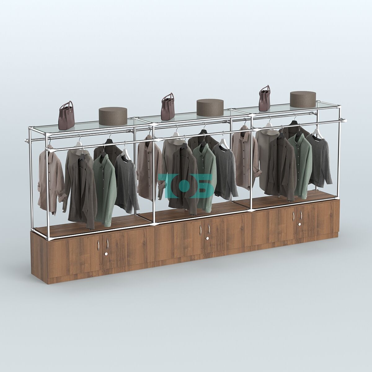 Поручни: шесть усиленных выносных поручней предназначены для удобного размещения одежды и других предметов, что повышает функциональность системы.