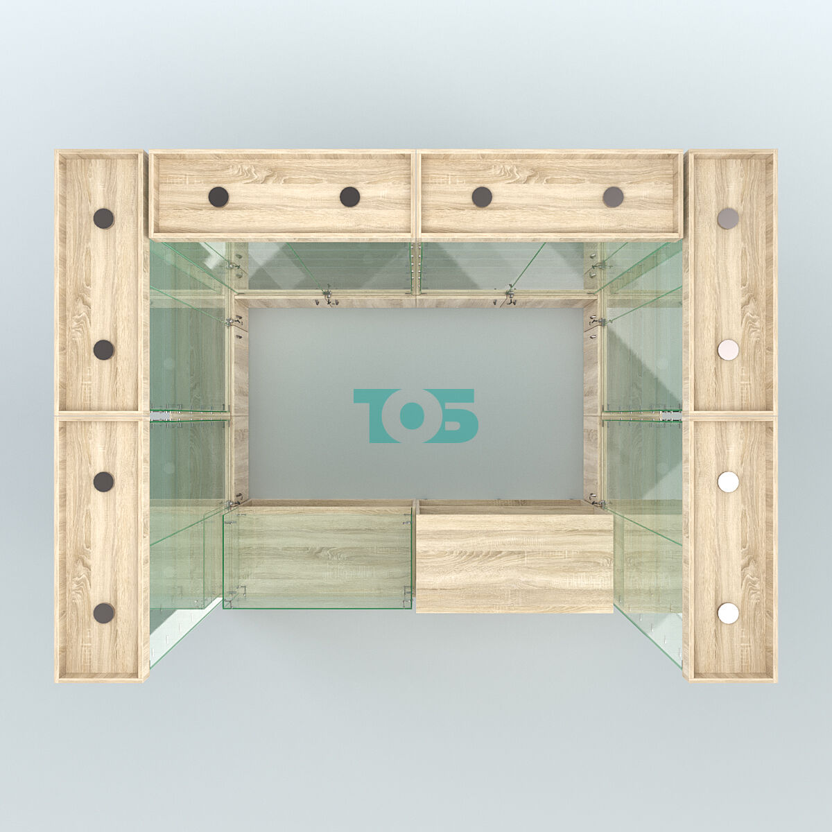 Каркас: изготовлен из ламинированной ДСП толщиной 16 мм и стекла, что обеспечивает прочность и долговечность конструкции.
