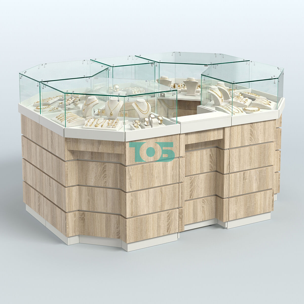 - островок удобен в использовании и включает все необходимое для начала торговли, а модульный принцип позволяет при изменении торговой площади добавлять или убирать необходимое количество модулей;