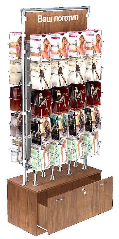 Главная Каталог Торговое оборудование по типам деятельности Для продажи колготок Островные двусторонние витрины для продажи колгот с З/C-Зеркало