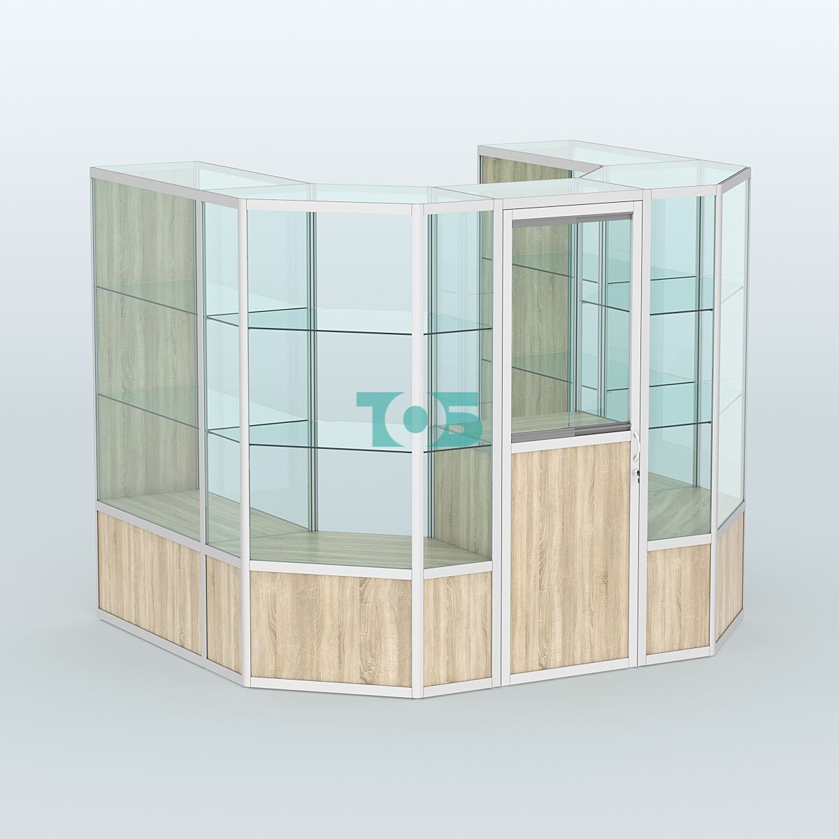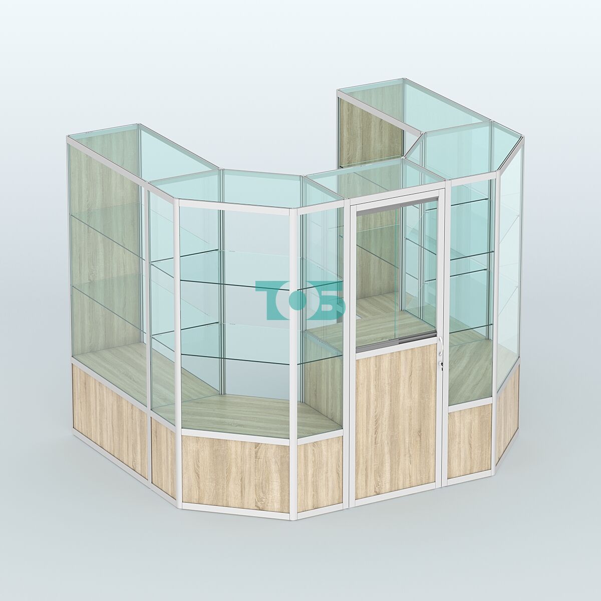 Торговый островок большой со стеклянными разделителями для продажи конфет и орехов на 91 ячейку №3-1 (10,57 кв.м)