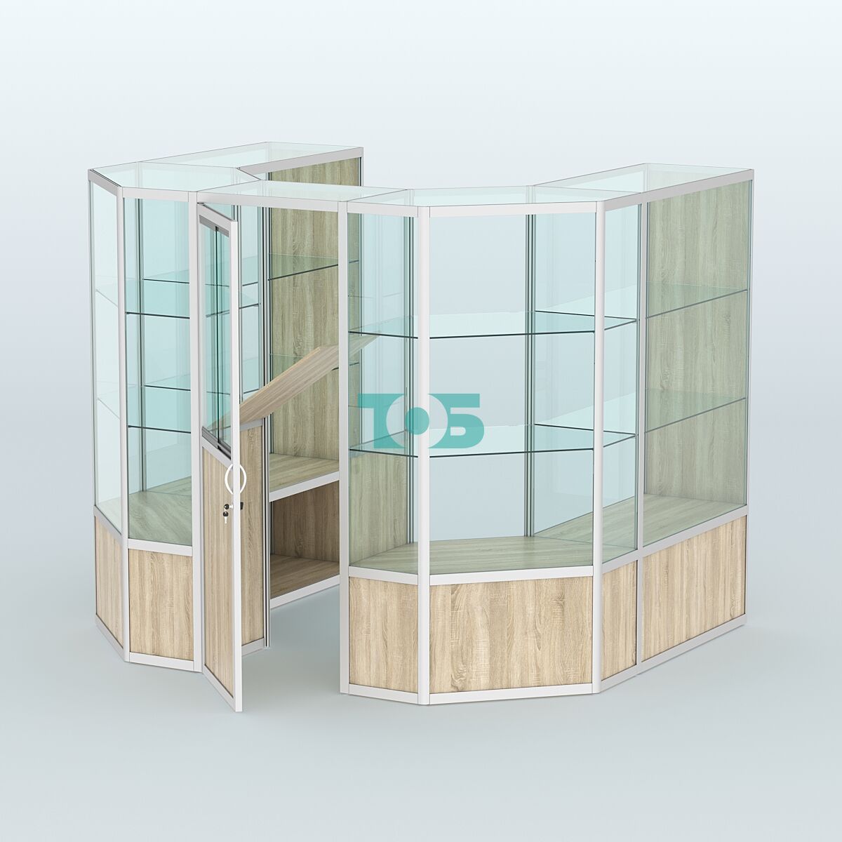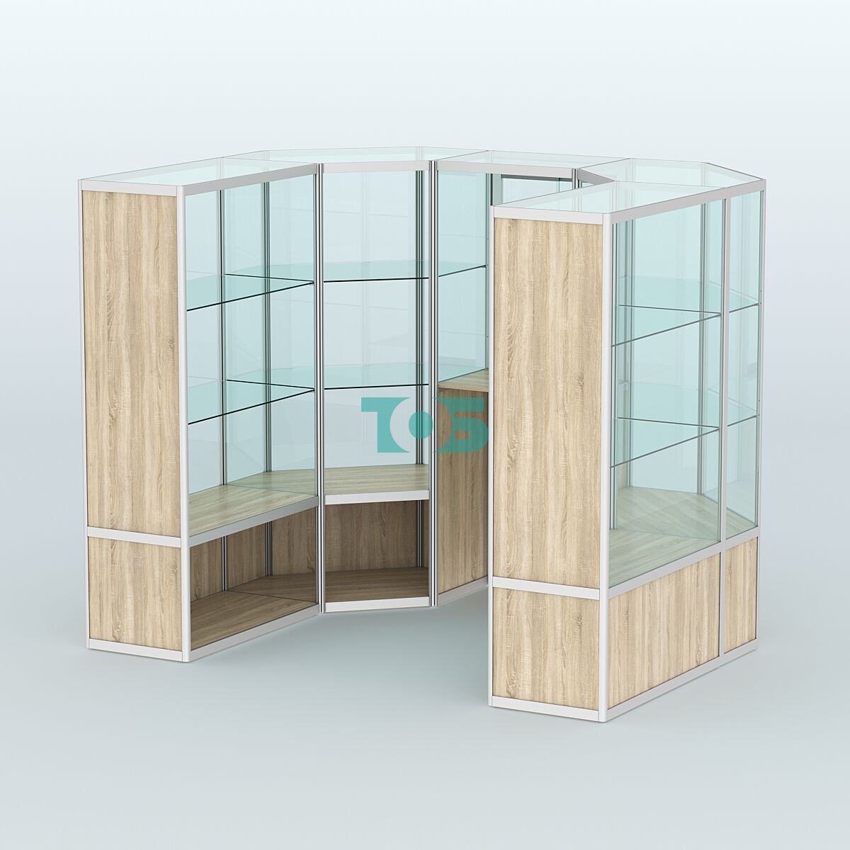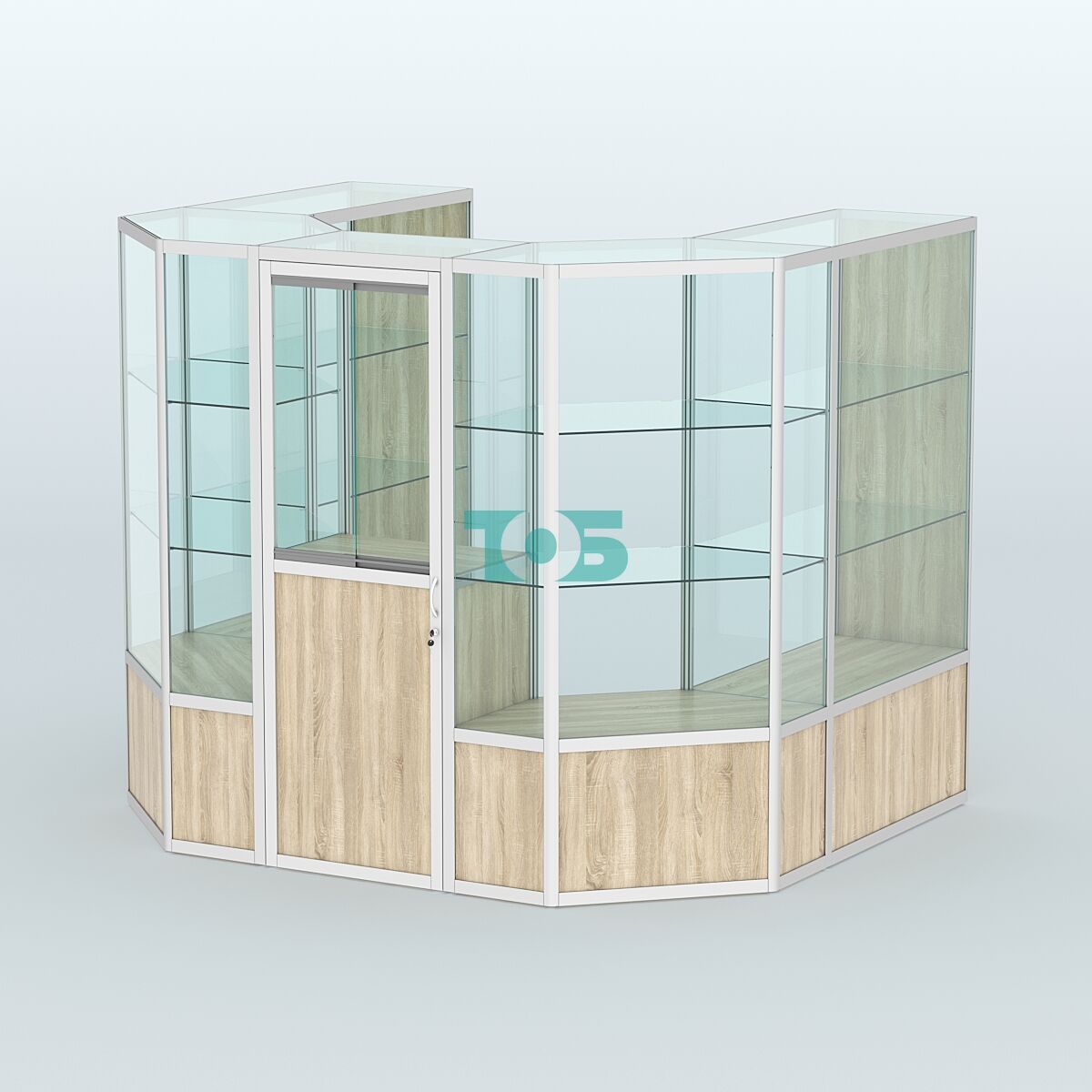 Полки: имеются по две стеклянные полки с каждой стороны, которые можно регулировать по высоте, что позволяет адаптировать пространство под различные нужды.