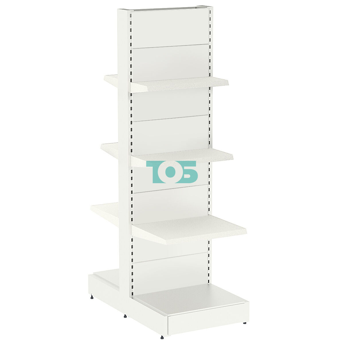 - стеллаж островной, полки расположены по обеим сторонам;
