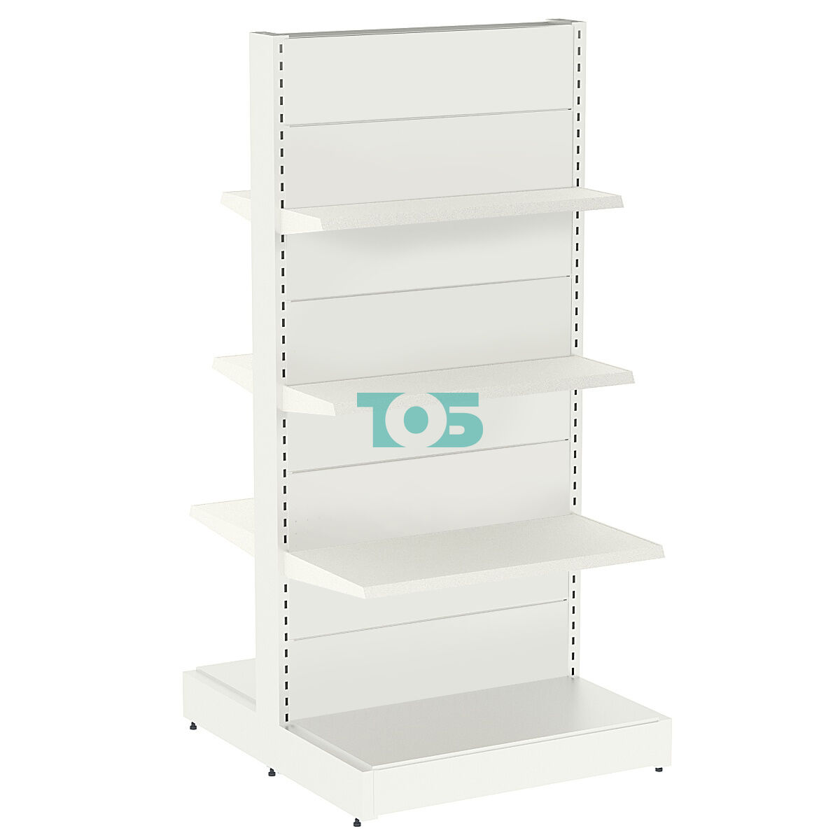 - стеллаж островной, полки расположены по обеим сторонам;