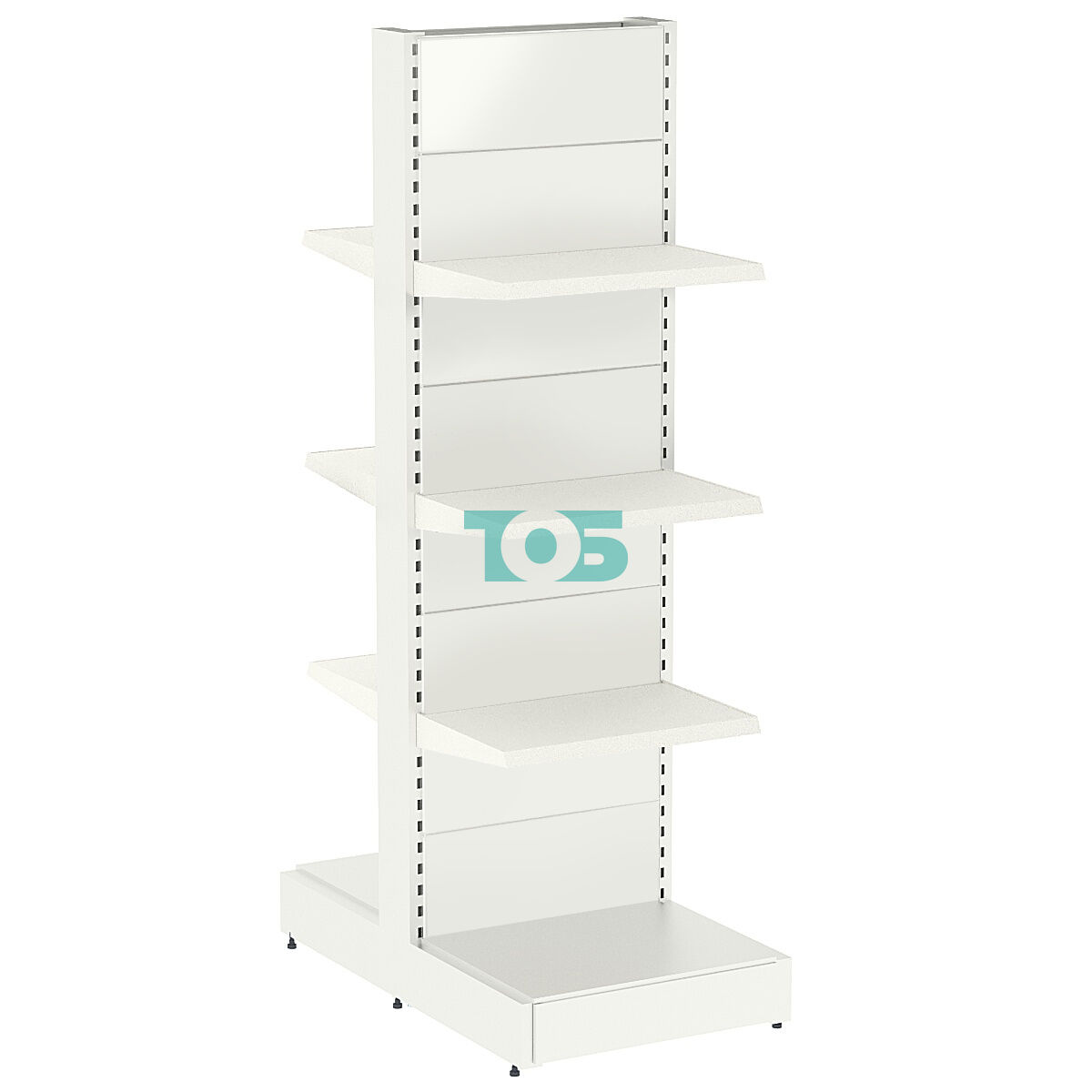 - стеллаж островной, полки расположены по обеим сторонам;