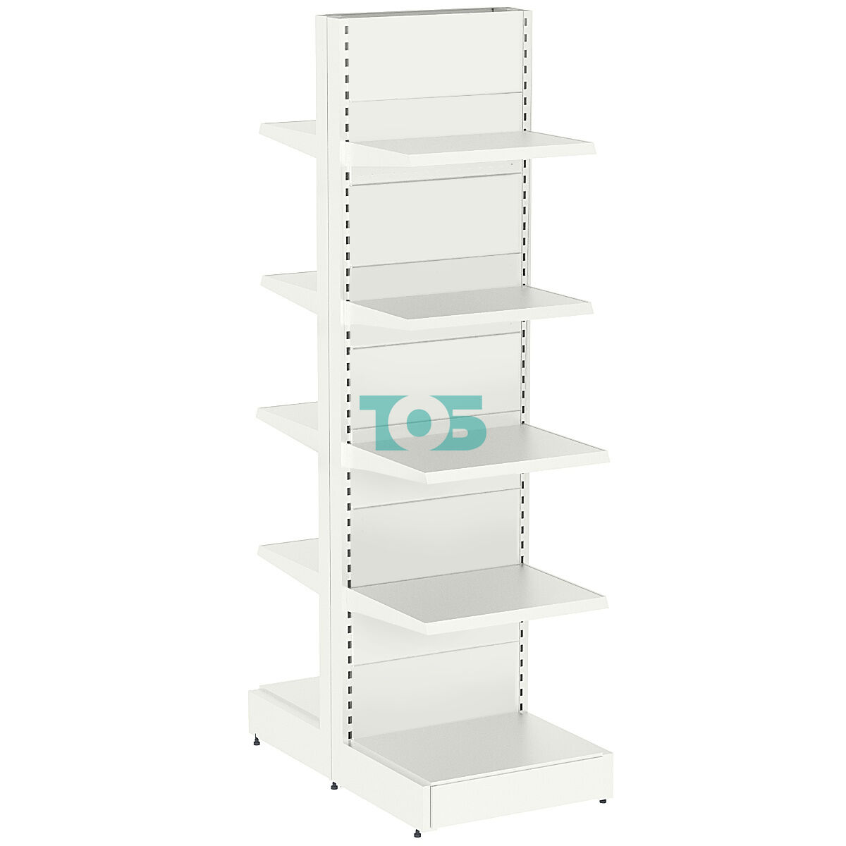 - стеллаж островной, полки расположены по обеим сторонам;