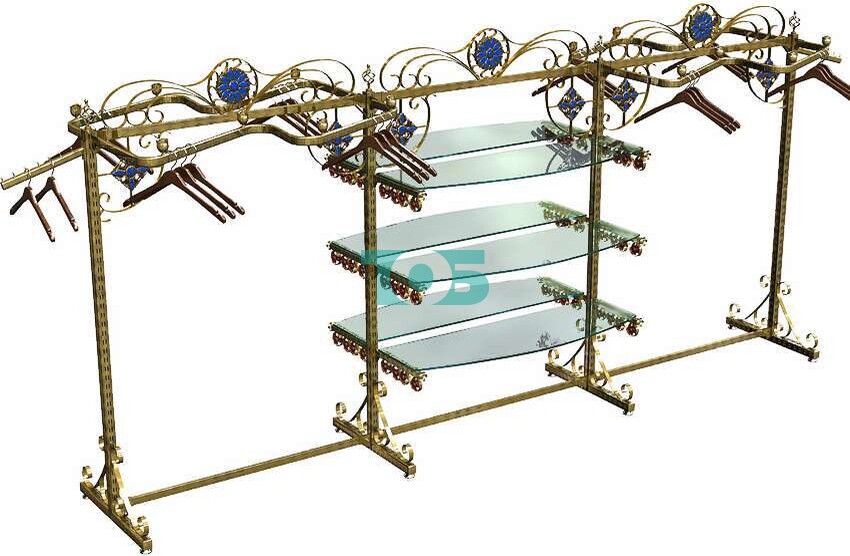 - шестью полками "БАРОККО" Стекло 6 мм закругленными размером 1200 x 400 мм;