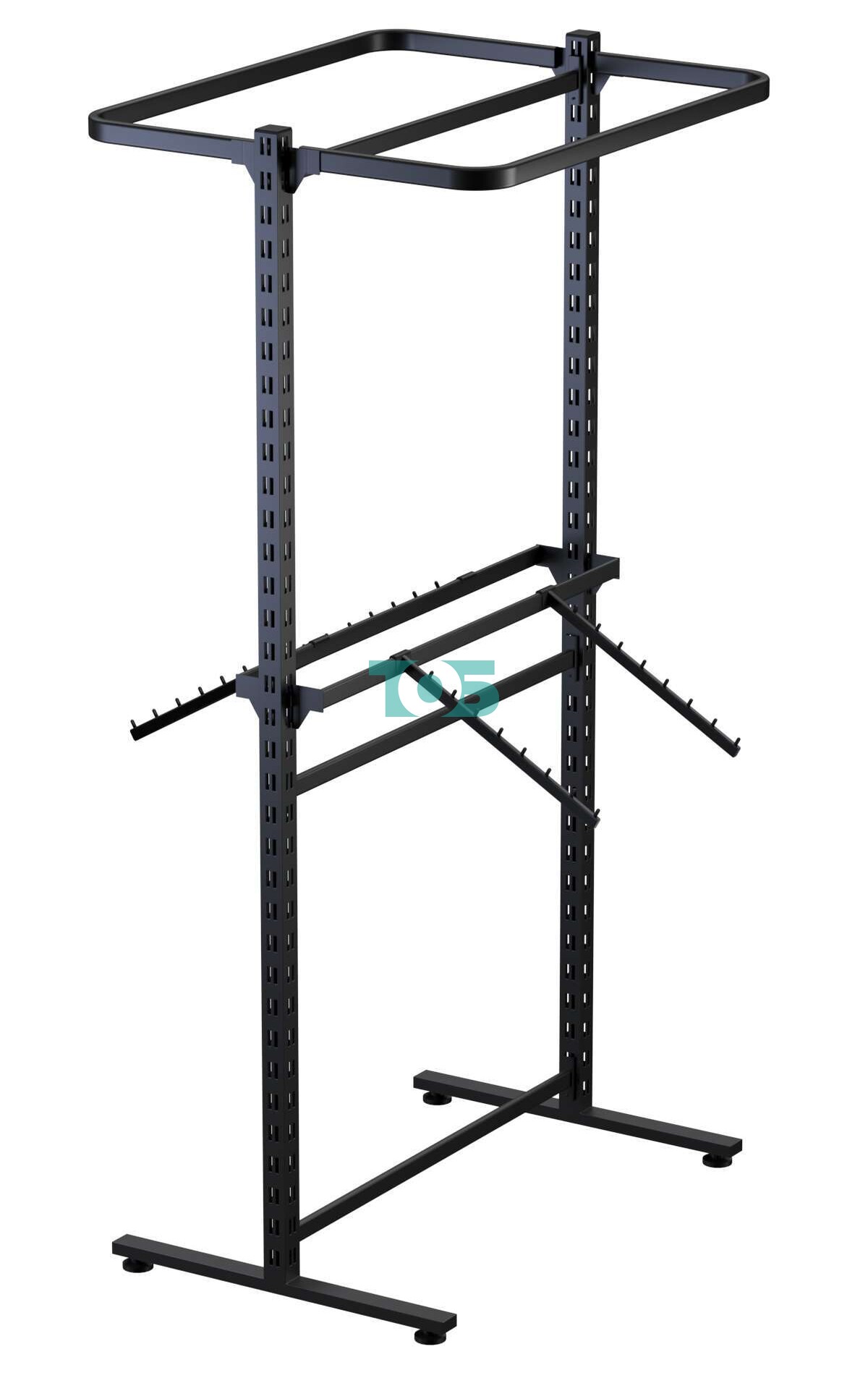 - два пристенных черных поручня для фасадной демонстрации одежды (выносные кронштейны либо крючки для пристенных поручней не входят в стоимость системы и приобретаются отдельно);