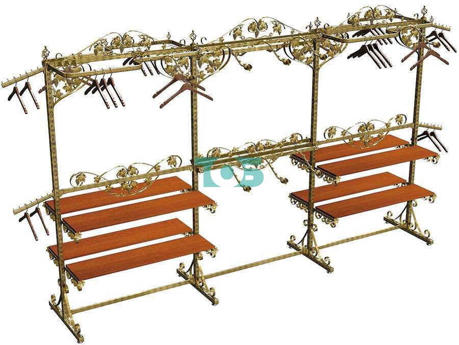 Главная Каталог Торговое оборудование с ковкой и декорами серии БАРОККО Торговая система для продажи одежды ВИНОГРАДНАЯ ЛОЗА Островные системы ВИНОГРАДНАЯ ЛОЗА (2400х3600 мм)