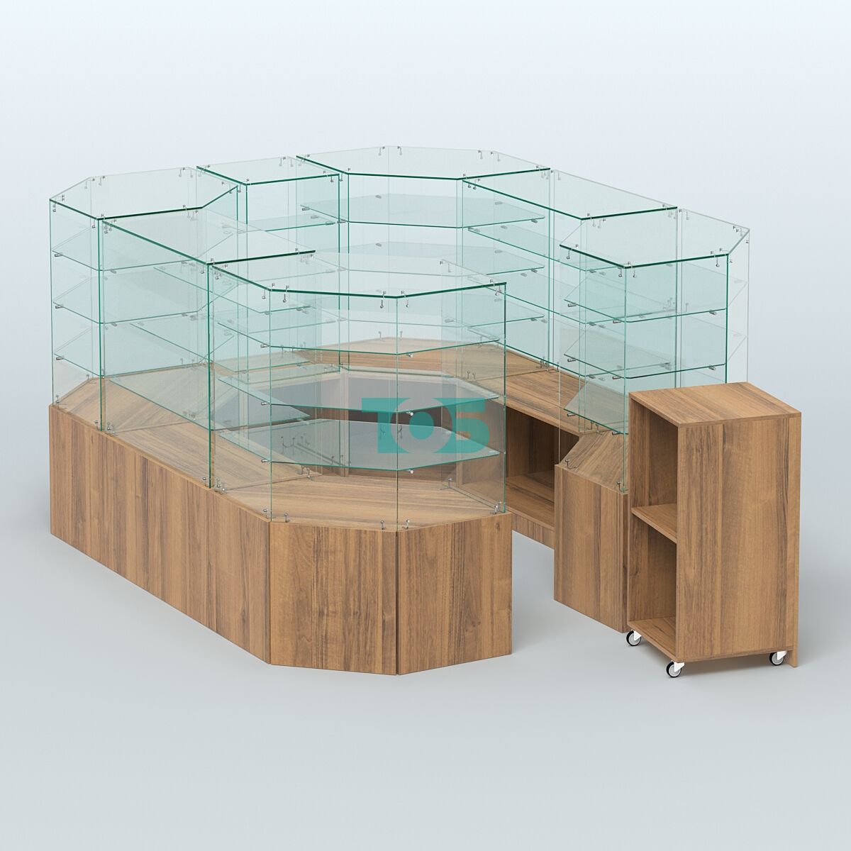Габаритные размеры: могут быть изменены в зависимости от стандартных блоков витрин, что даёт возможность адаптировать павильон под конкретные условия и требования.
