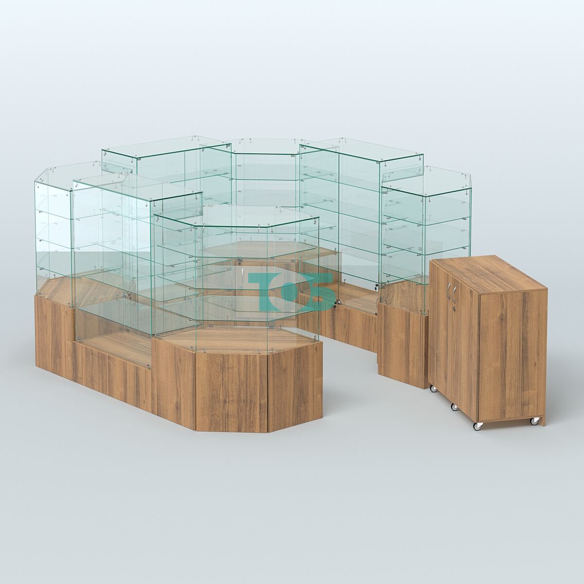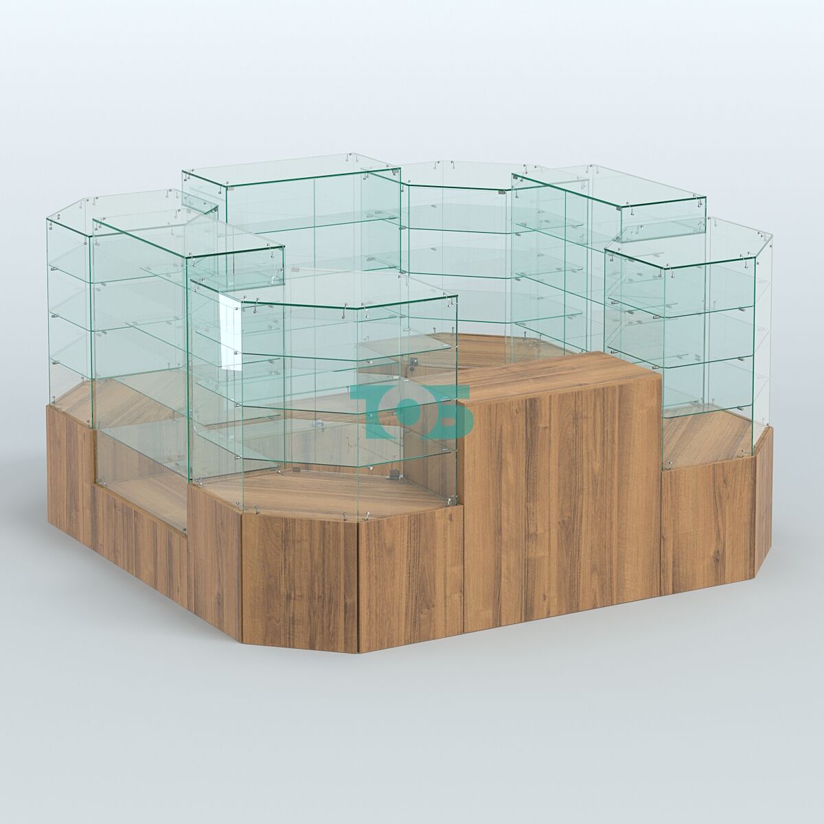 Высота павильона: предусмотрено сочетание высот на 1390 мм и 1310 мм, что позволяет гибко организовать пространство и оптимизировать размещение товаров.