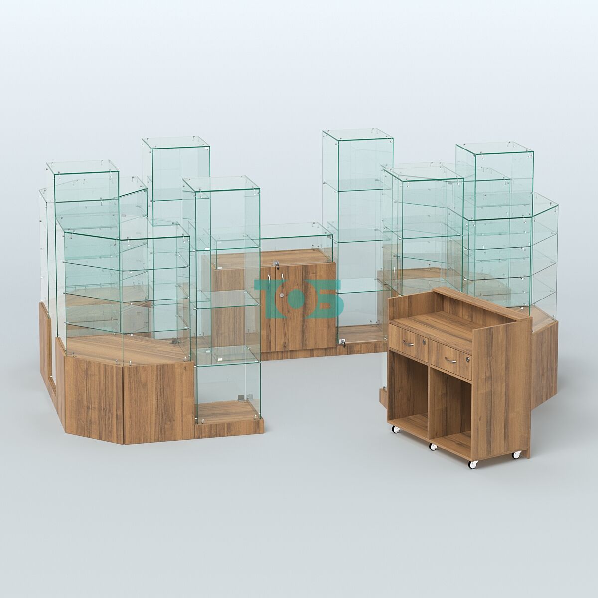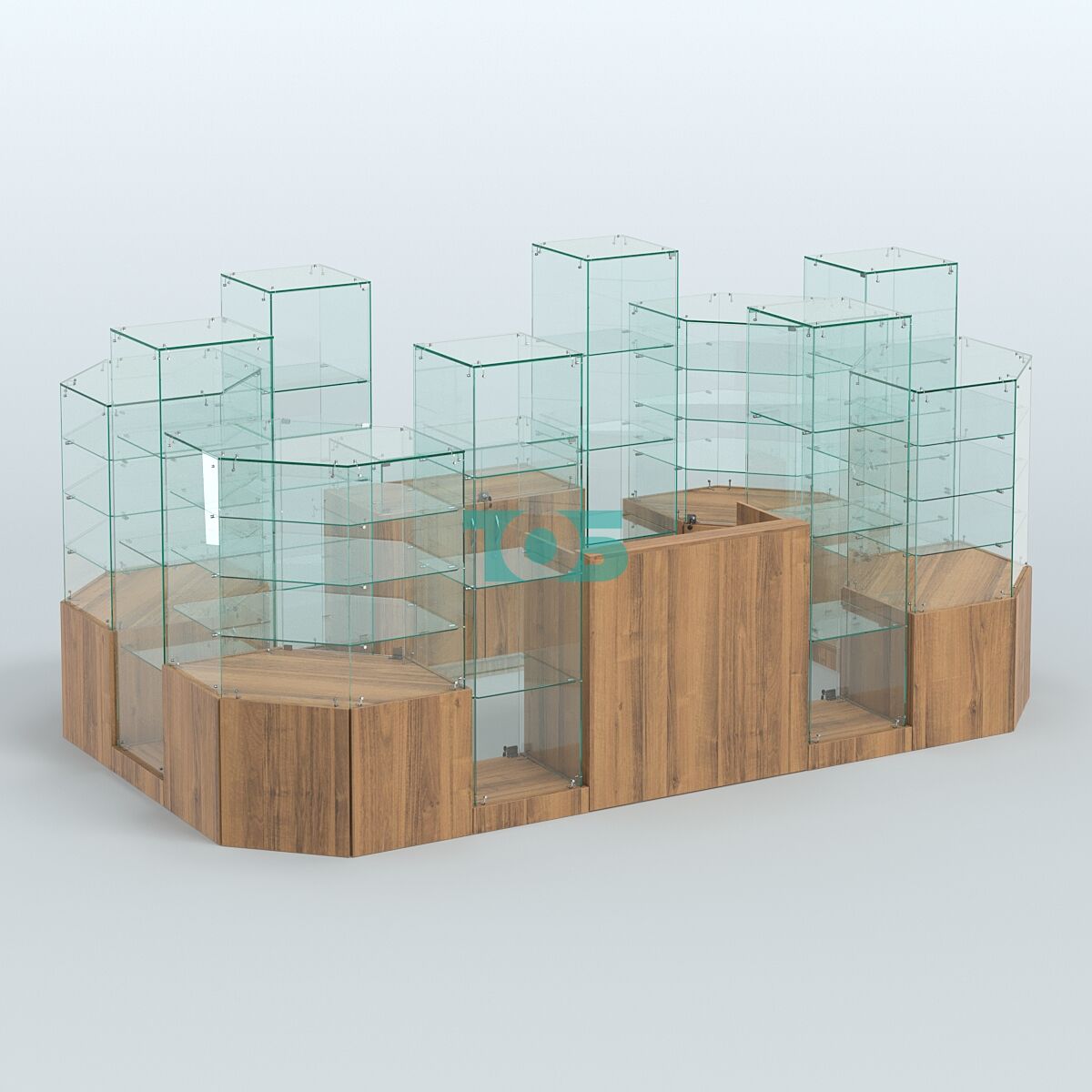 Габаритные размеры: могут быть изменены в зависимости от стандартных блоков витрин, что даёт возможность адаптировать павильон под конкретные условия и требования.