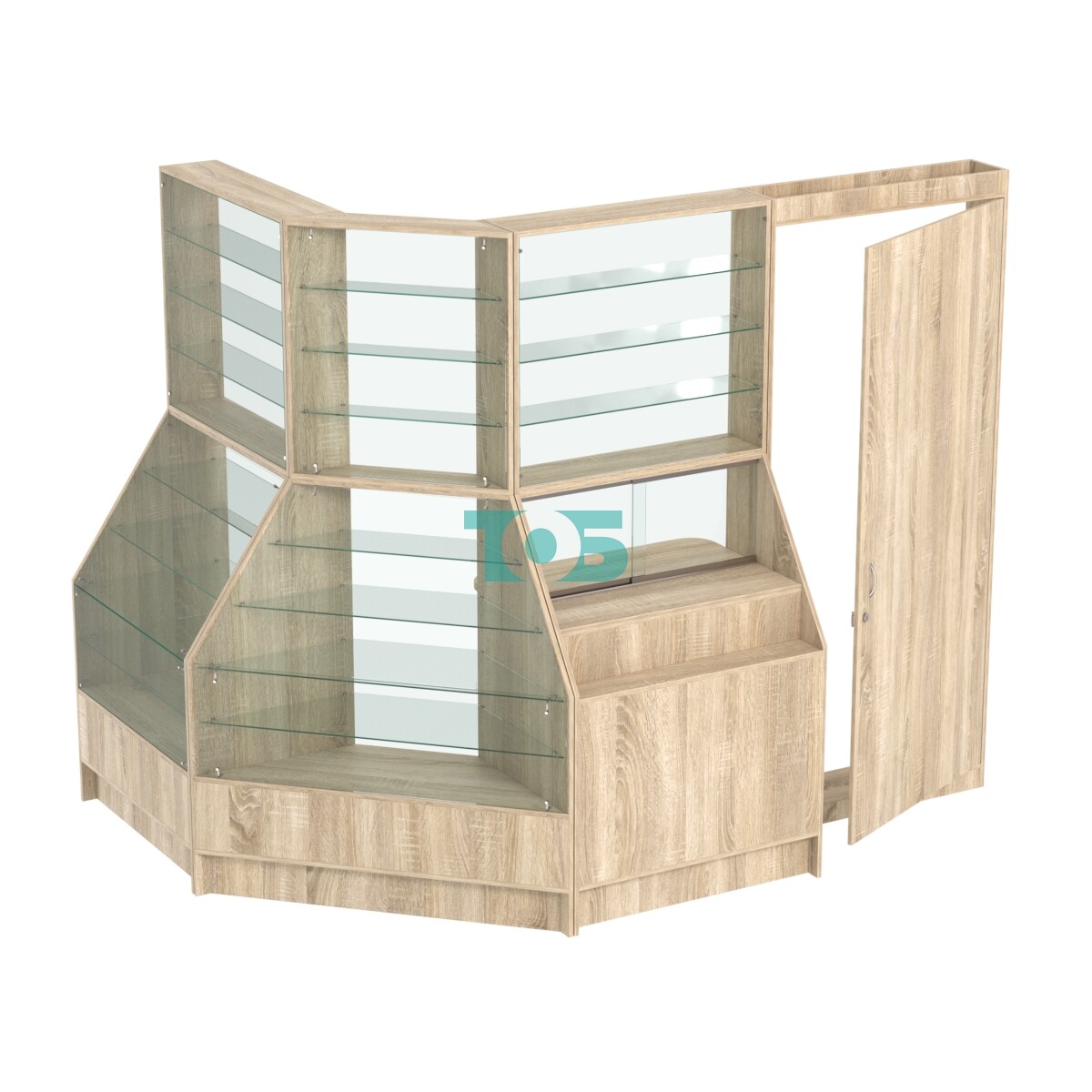 Витрины: со стороны продавца витрины открытые, что позволяет легко выставлять товары и обслуживать покупателей.