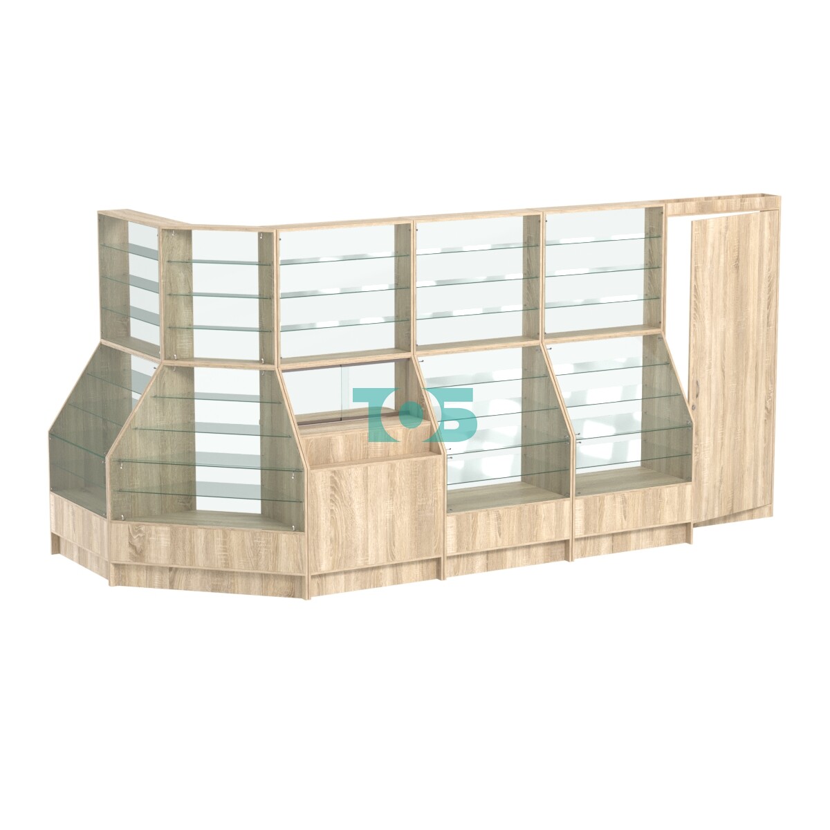 • Витрины: со стороны продавца витрины открытые, что обеспечивает хороший обзор товаров и облегчает взаимодействие с покупателями.