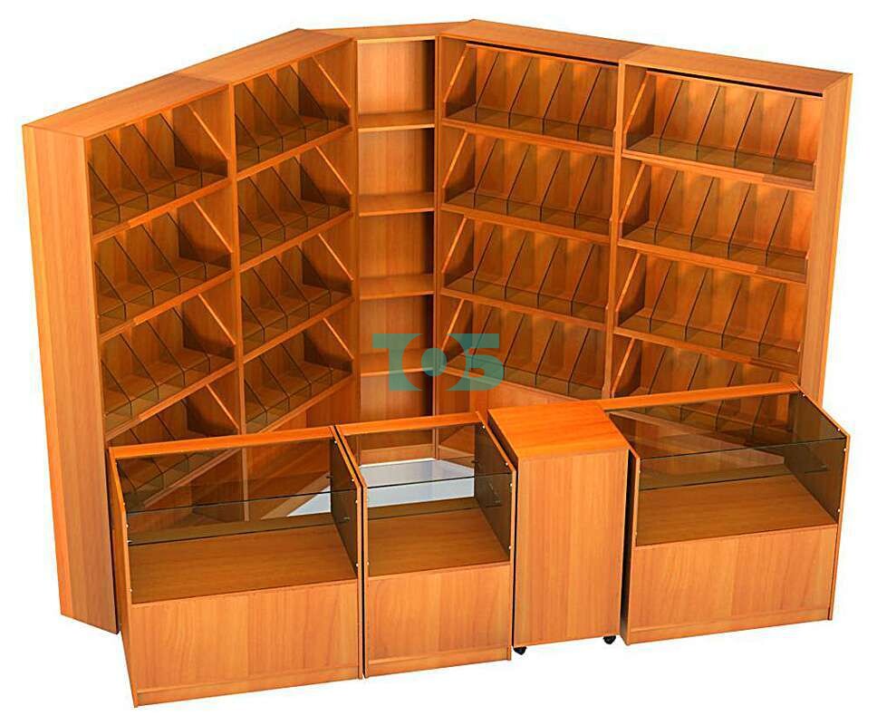 - Павильон имеет прямоугольную форму, состоит из 4 стеллажей с разделителями под сыпучие товары, 1 углового стеллажа, 3 прилавков, и тумбы кассира.