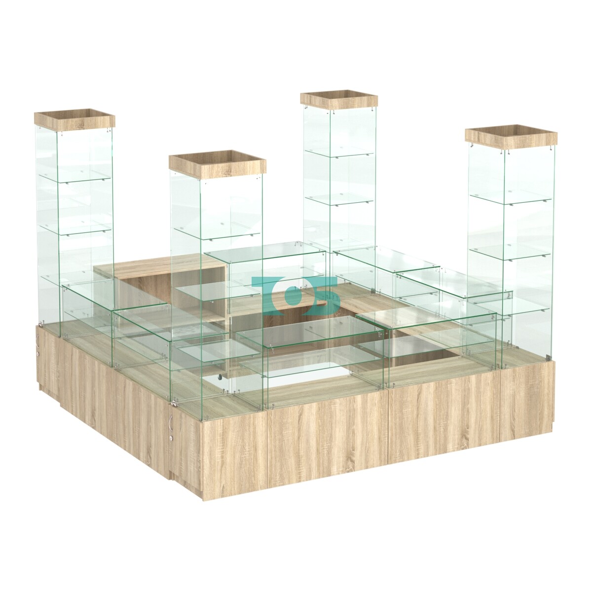 Дополнительные возможности: витрины и тумбы могут быть оснащены дверцами, запирающимися на ключ, что обеспечивает безопасность товаров.