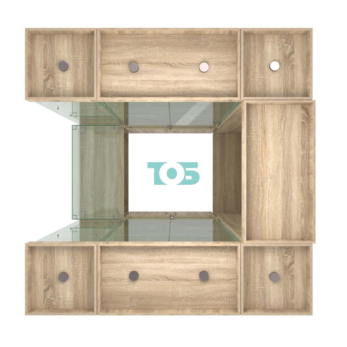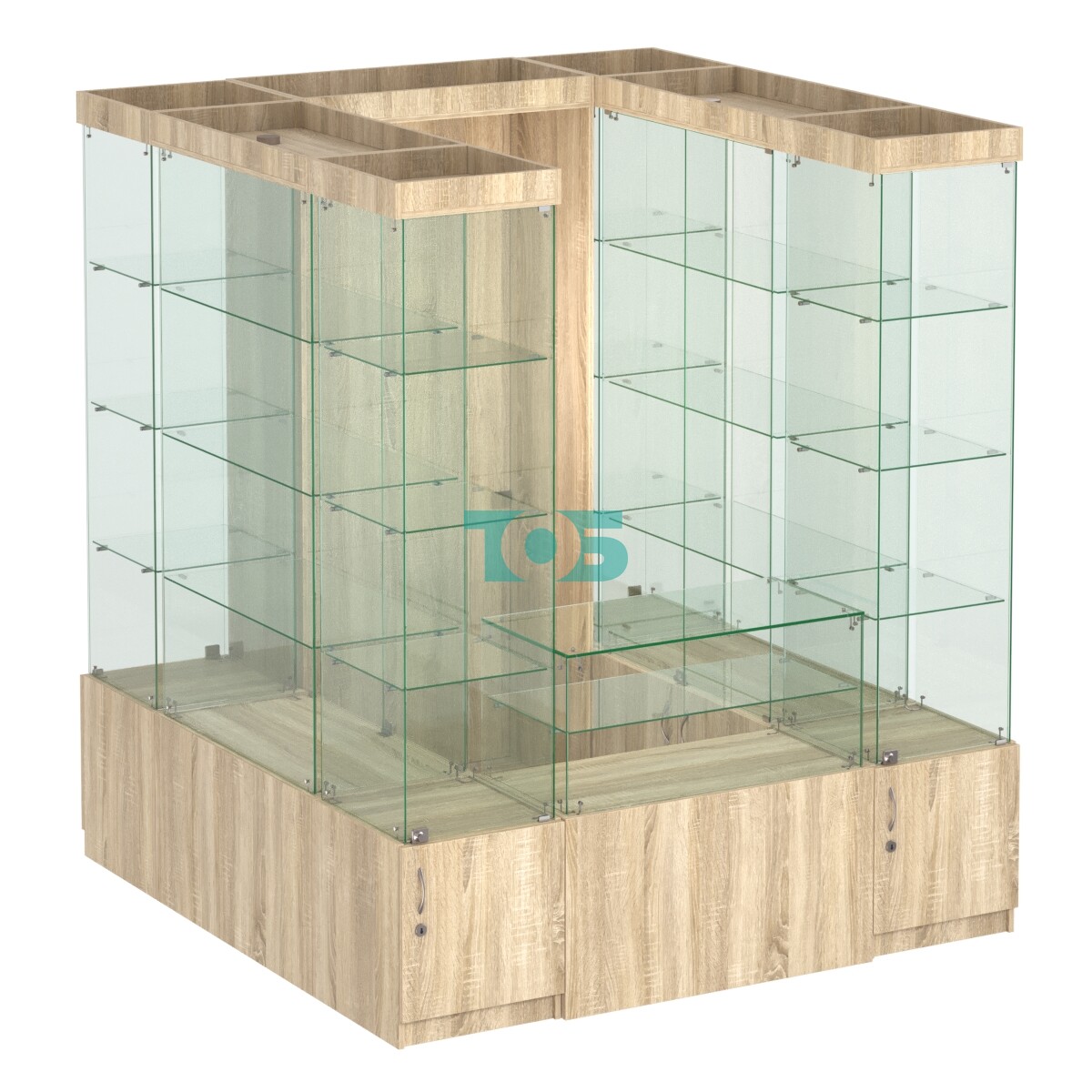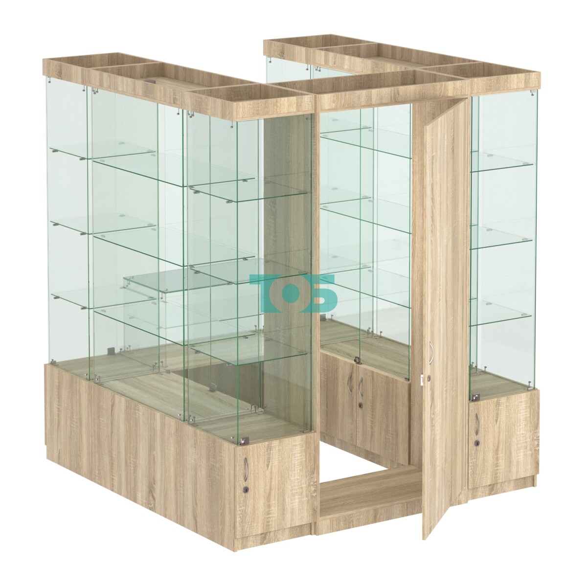 Внутреннее оснащение: в витрине предусмотрены три стеклянные полки для размещения товаров.