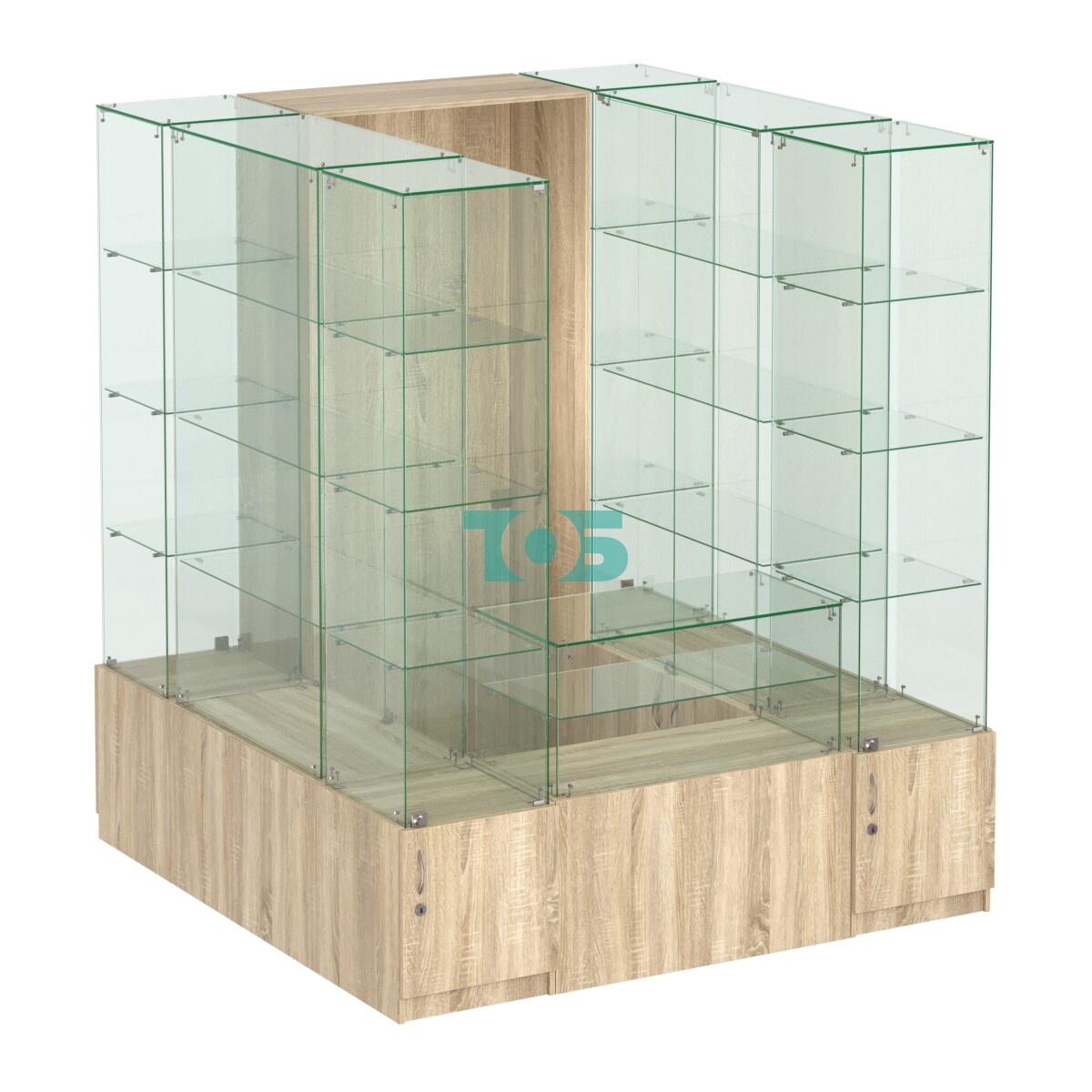 Дизайн: верх витрины и задняя стенка выполнены из стекла, что создаёт ощущение простора и лёгкости, а также позволяет максимально использовать естественное освещение.
