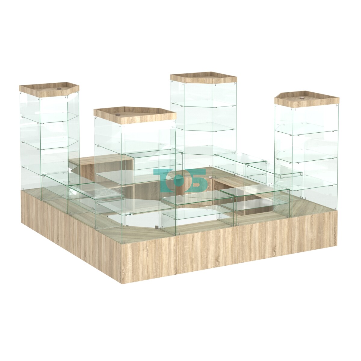 Дополнительные возможности: витрины и тумбы могут быть оснащены дверцами, запирающимися на ключ, что обеспечивает безопасность хранения товаров.