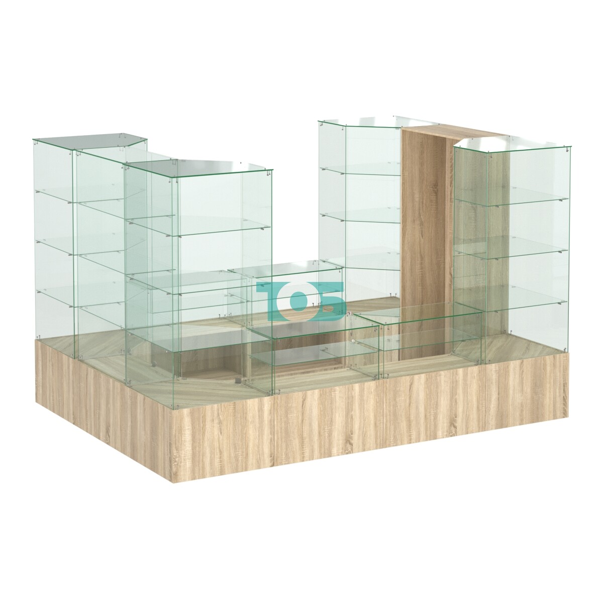Дополнительные возможности: витрины и тумбы могут быть оснащены дверцами, запирающимися на ключ, что повышает безопасность хранения товаров.