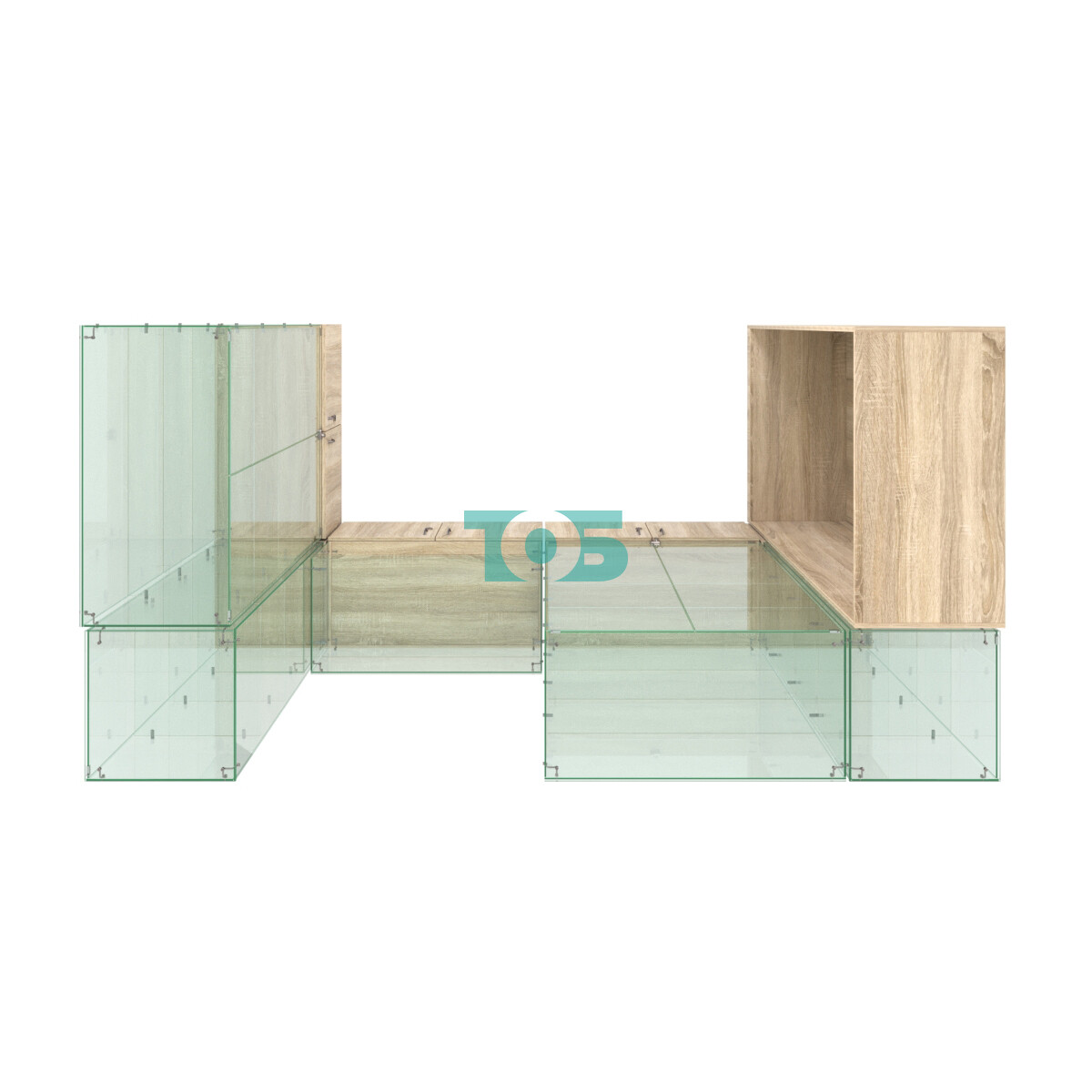Габаритные размеры: могут быть изменены в зависимости от стандартных блоков витрин, что позволяет адаптировать павильон под конкретные условия.