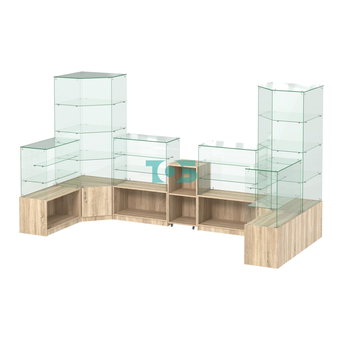 Габаритные размеры: могут быть изменены исходя из стандартных блоков витрин, что позволяет адаптировать павильон под конкретные потребности.