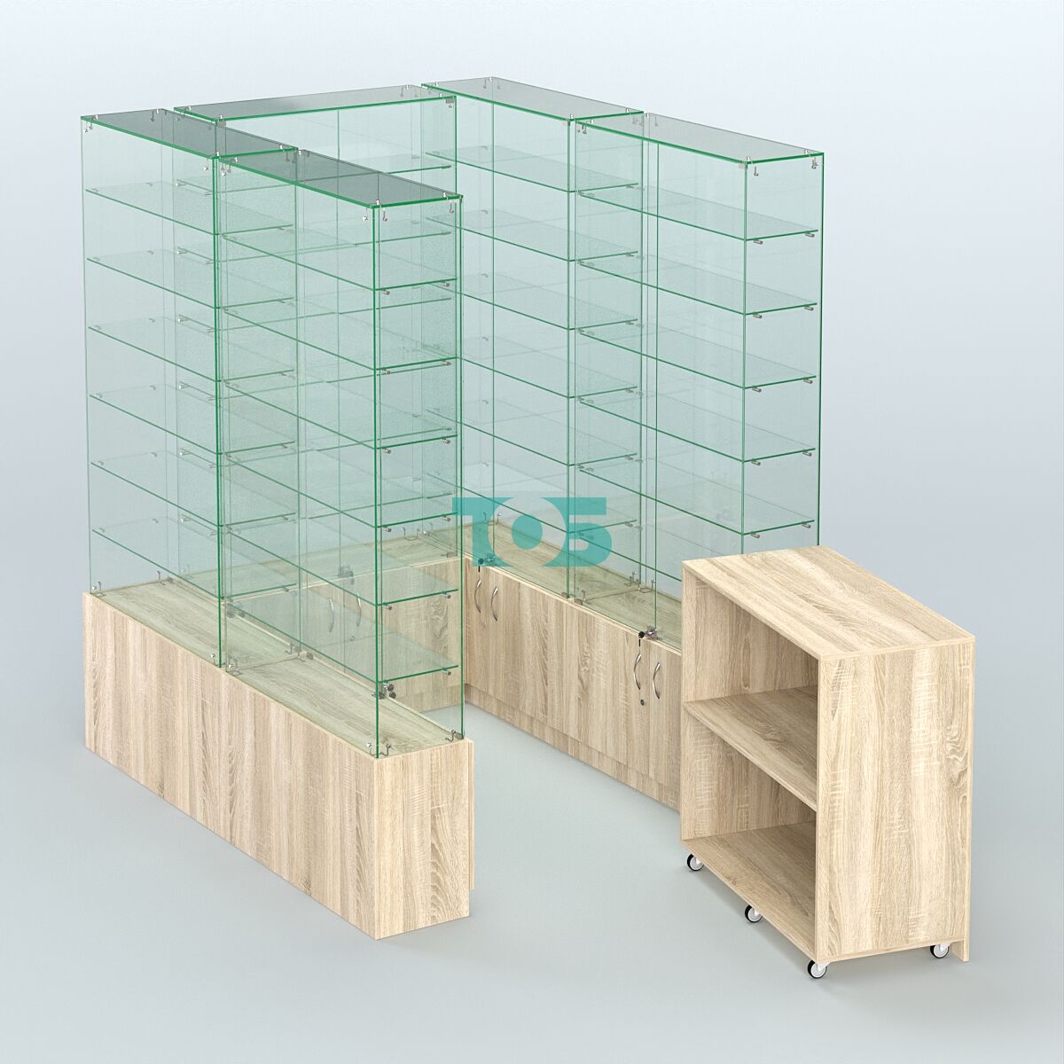 • Павильон ИСТРА (глубина витрин-300мм) №1в (2, 70 кв.м), Дуб Золотистый