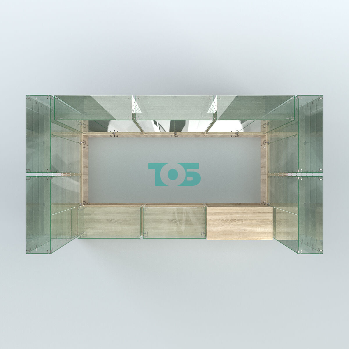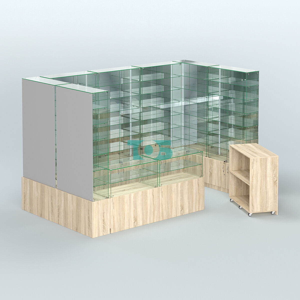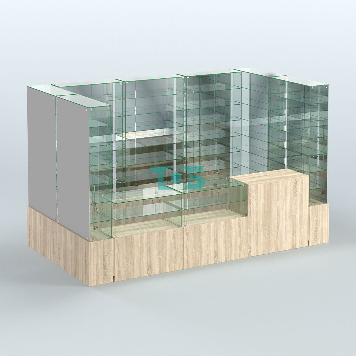 Полки: в каждой витрине установлено по 6 стеклянных полок, что позволяет оптимально организовать пространство для размещения товаров.