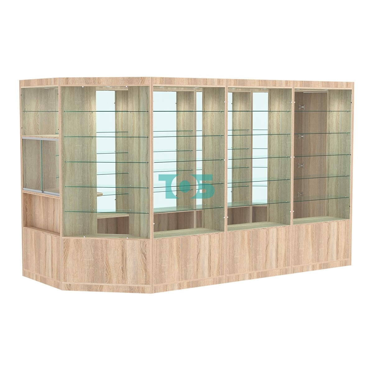 Витрина-прилавок: для общения между покупателем и продавцом предусмотрена витрина-прилавок с раздвижными стёклами, что создаёт удобное пространство для взаимодействия.