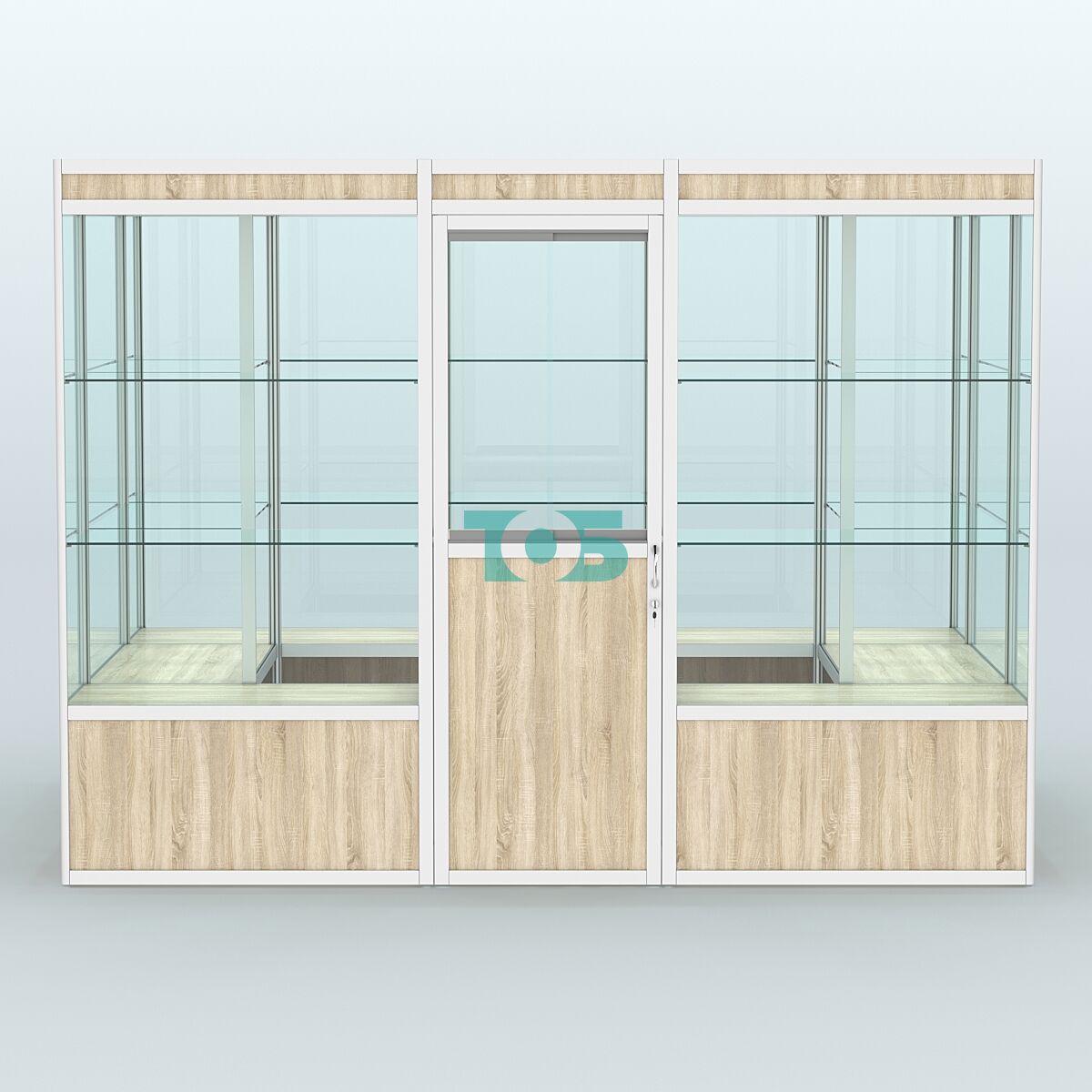 - Стеклянные дверки в распашной двери павильона, используемые в качестве окна выдачи.