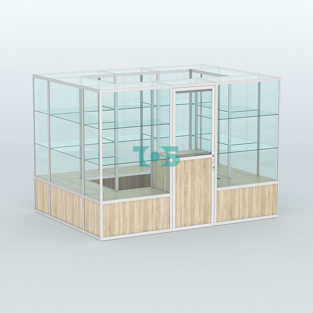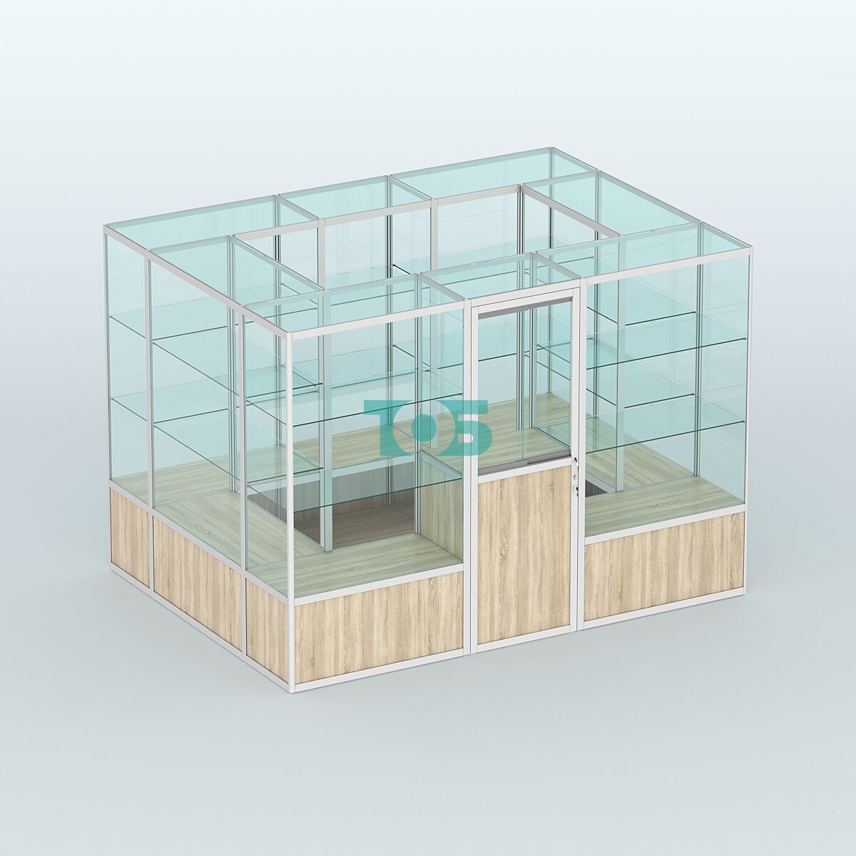 - Стеклянные дверки в распашной двери павильона, используемые в качестве окна выдачи.