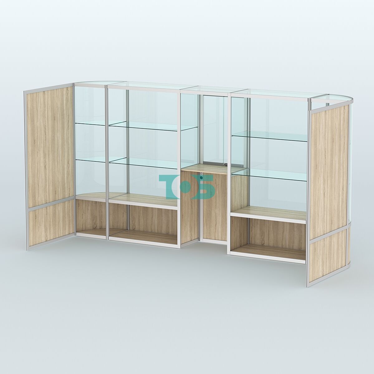 Торцы: не прозрачные, что может быть предпочтительно для определённых конфигураций торговых или информационных пространств.