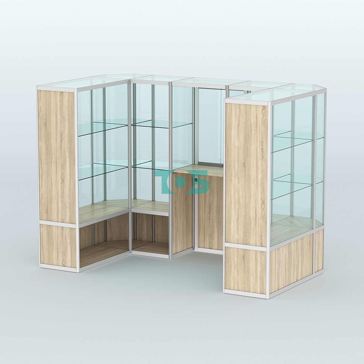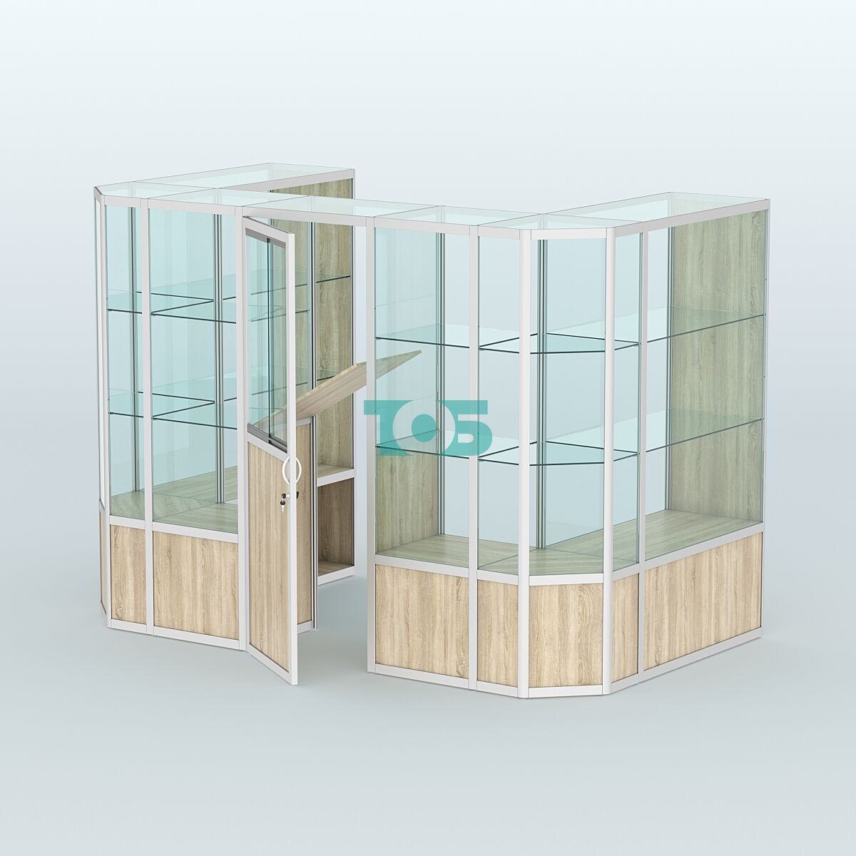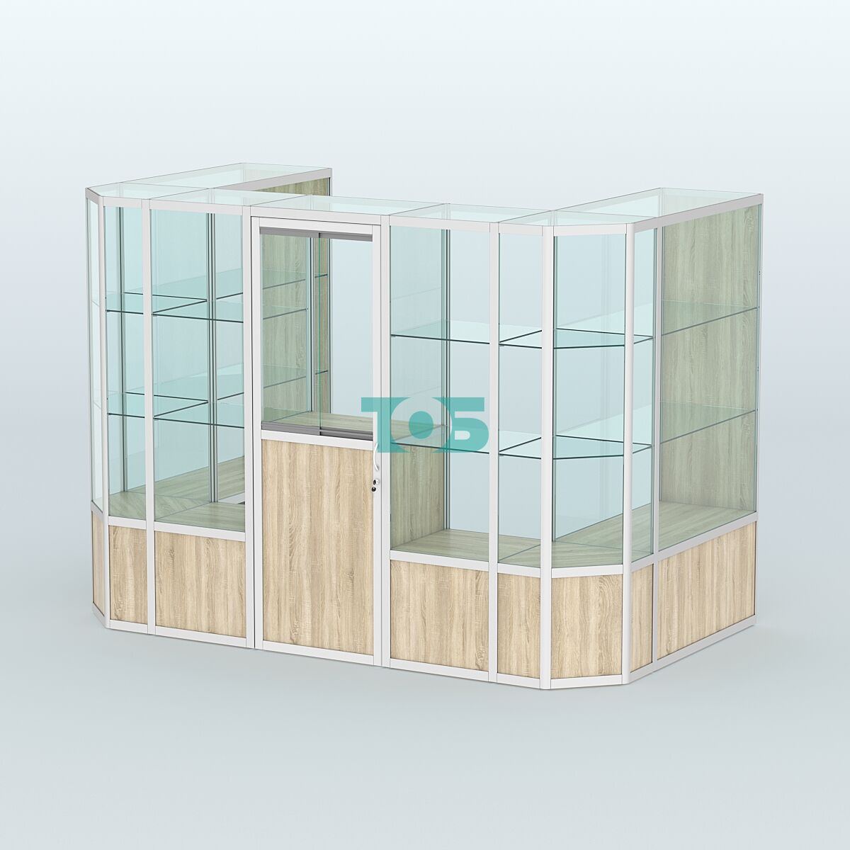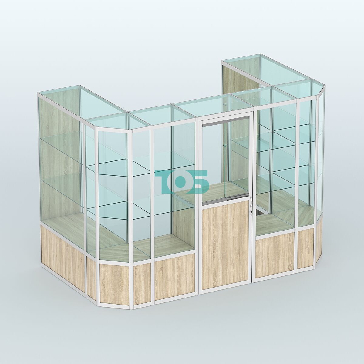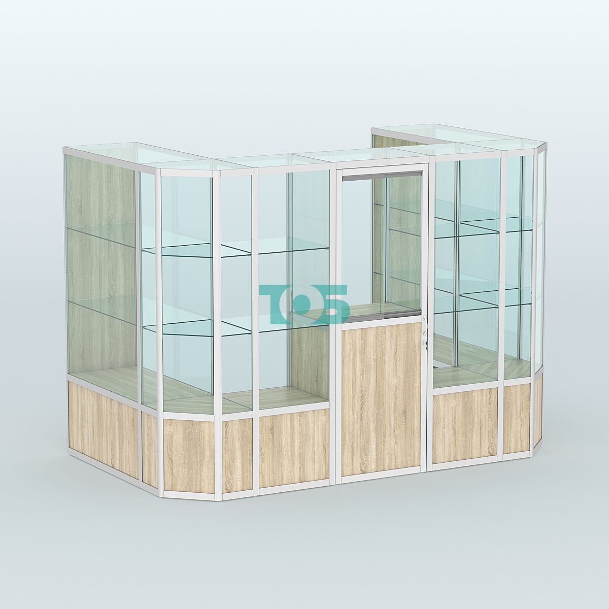 Полки: две стеклянные полки с каждой стороны, которые можно регулировать по высоте, что позволяет адаптировать пространство под различные нужды.