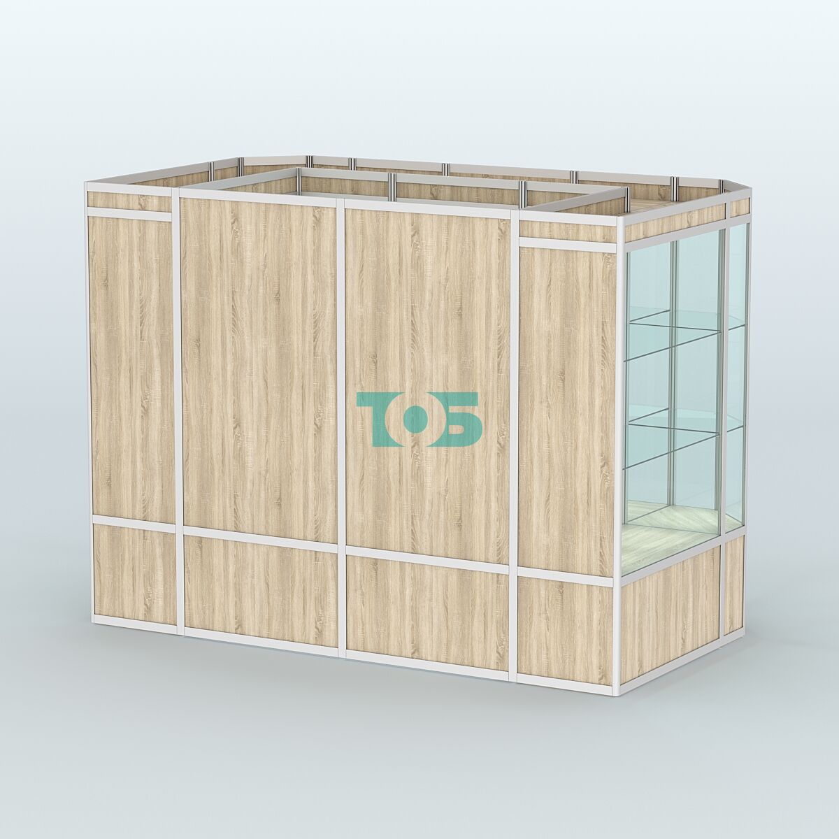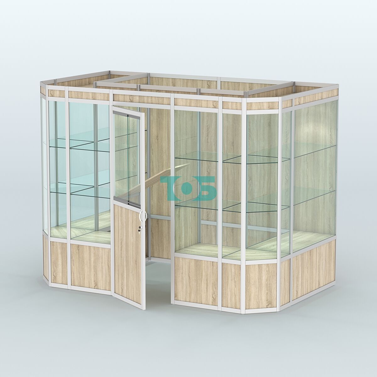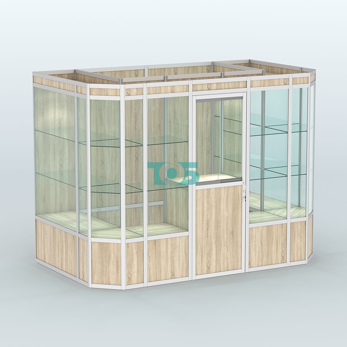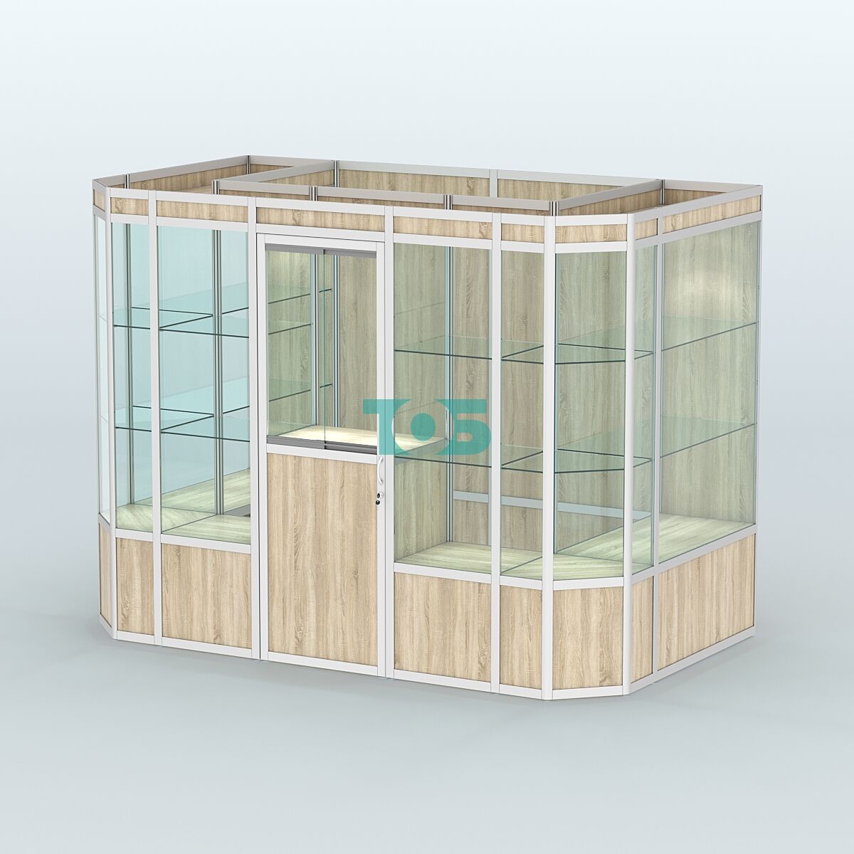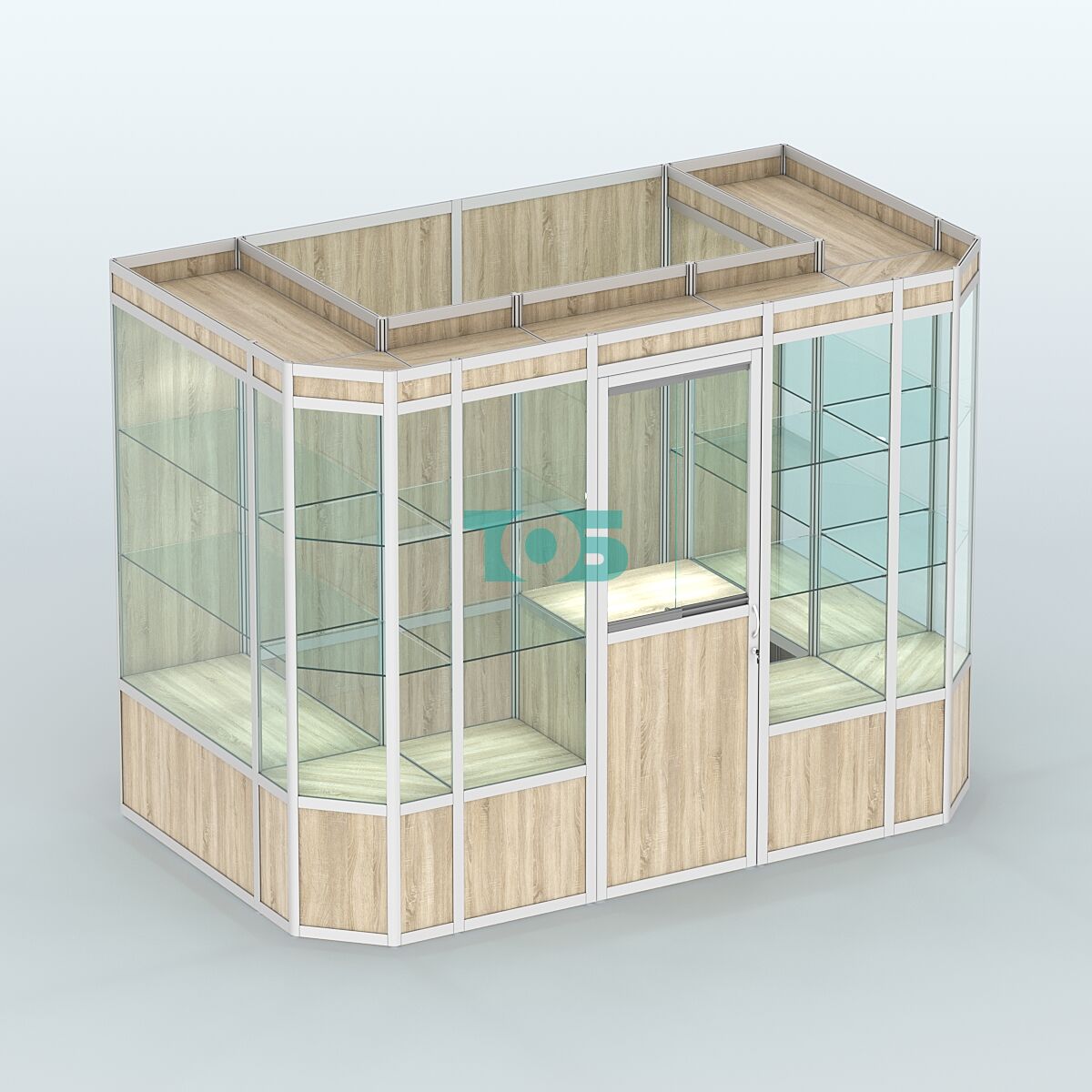 • Форма: прямоугольная с скошенными правым и левым углами и глухая задняя стенка, что придаёт павильону уникальный внешний вид.
