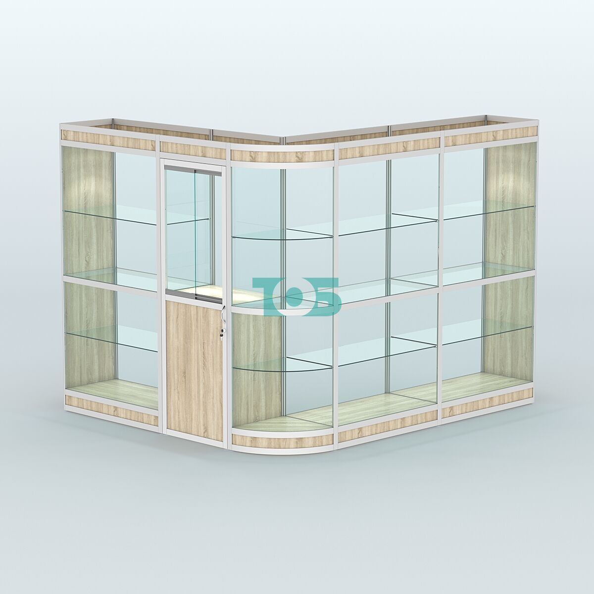 - Павильон имеет Г-образную форму, одна сторона имеет закругление.