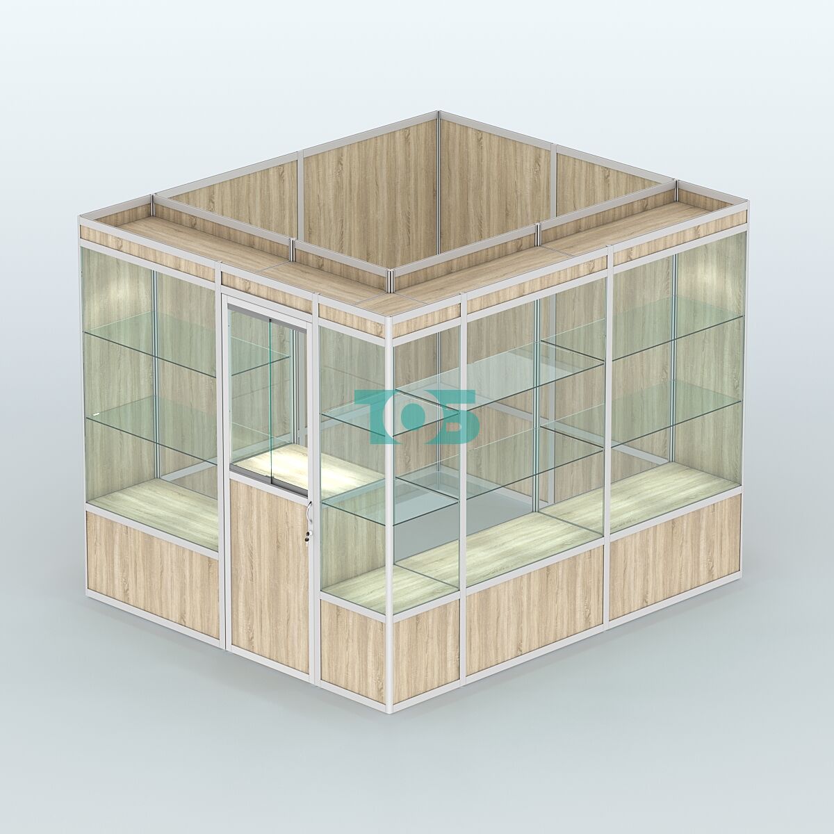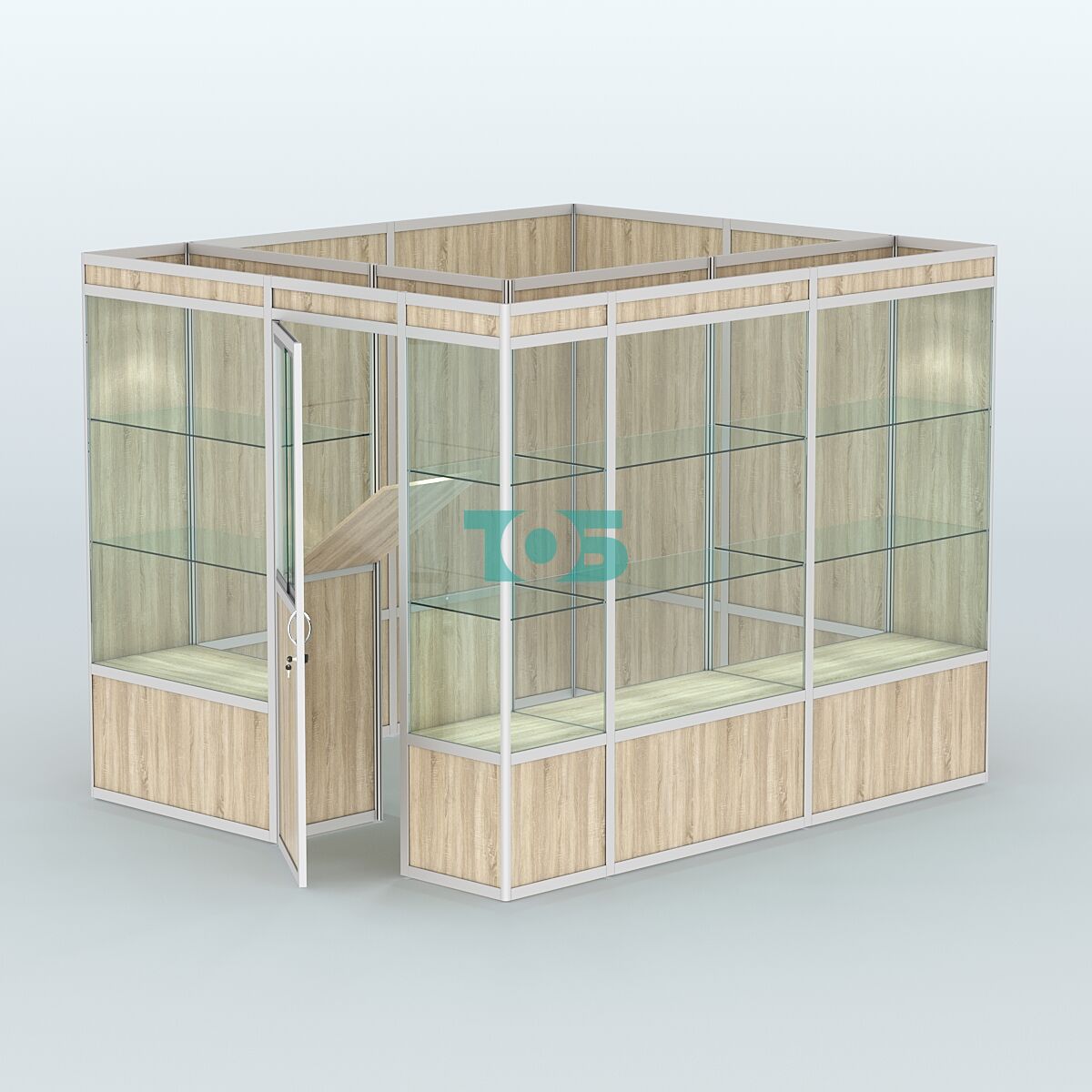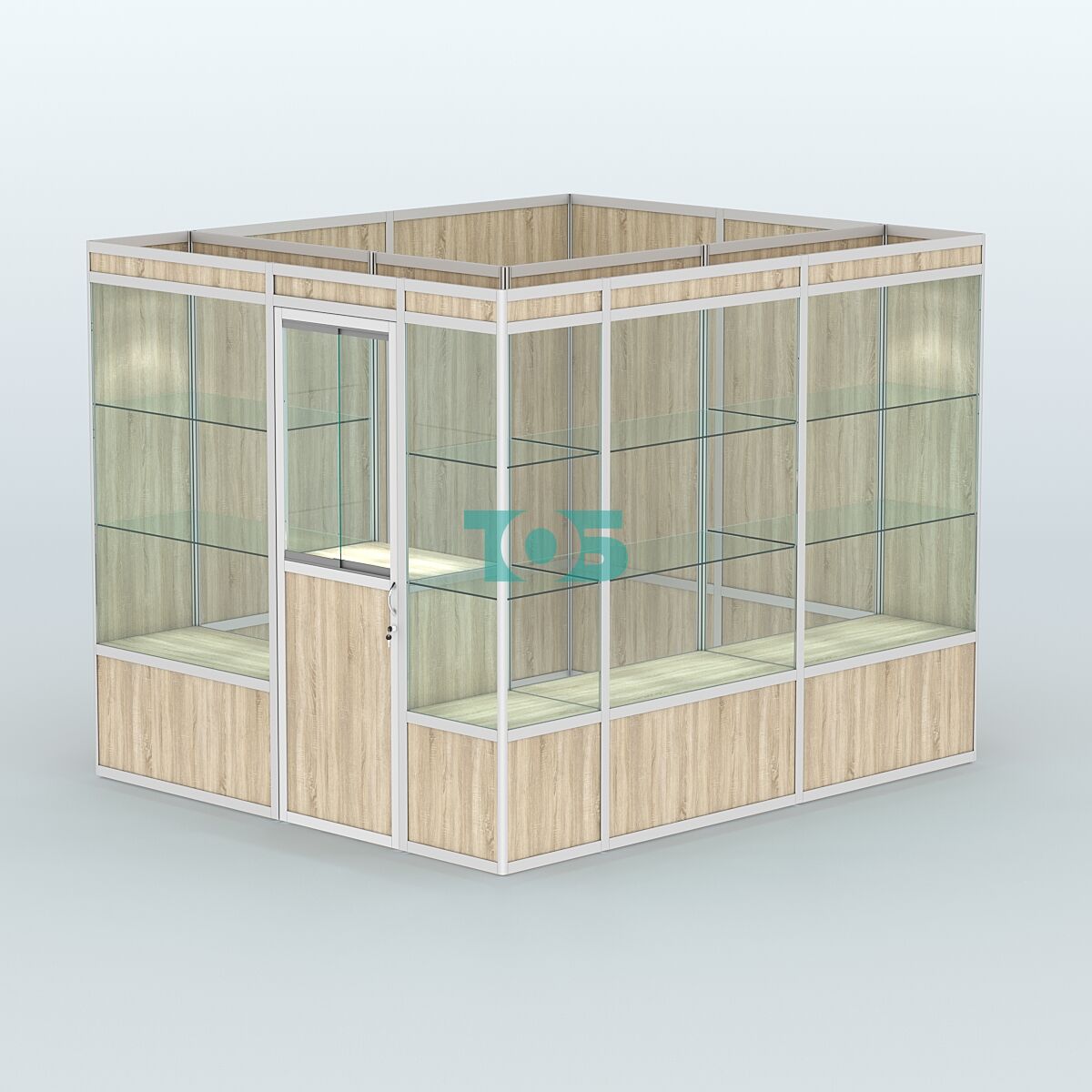 - Павильон имеет две застекленные стороны и две глухие стенки.