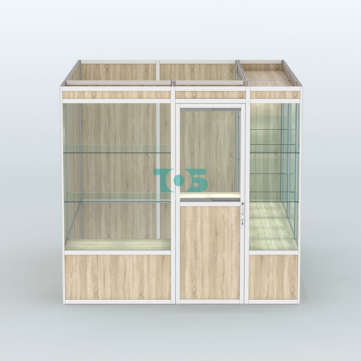 - Стеклянные дверки в распашной двери павильона, используемые в качестве окна выдачи.