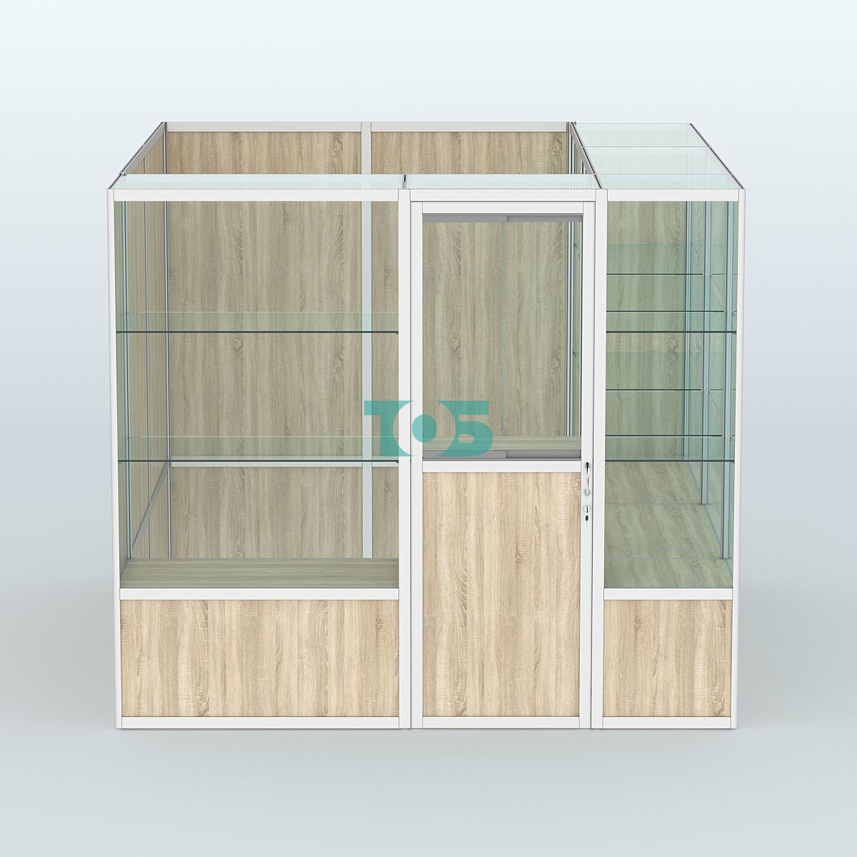 - Стеклянные дверки в распашной двери павильона, используемые в качестве окна выдачи.